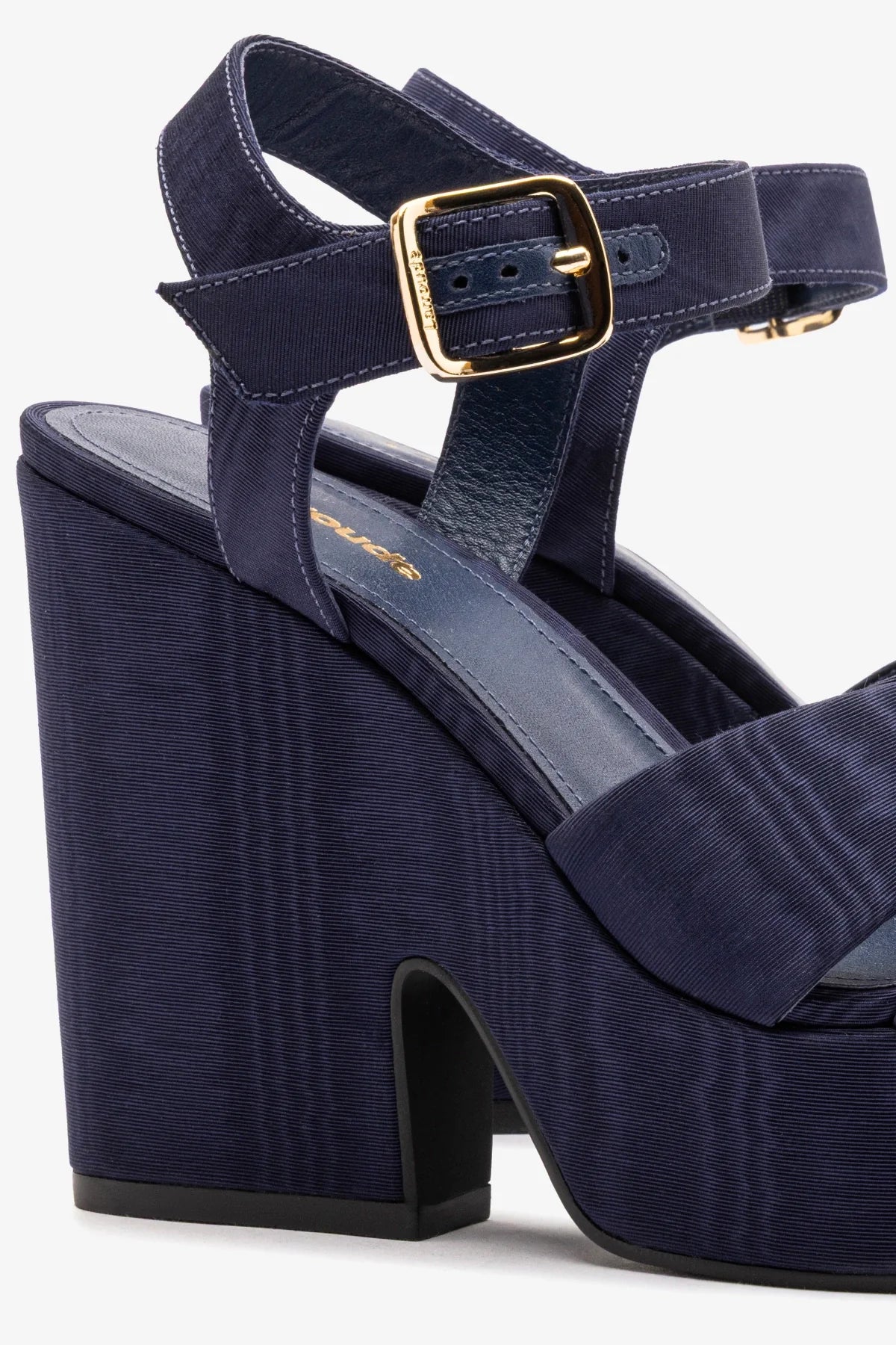 Inspirado nos anos 70 e na atitude icônica de Cher, este modelo traz salto bloco com meia-pata que garante impacto visual e estabilidade. As tiras largas com textura e a fivela no tornozelo reforçam o design marcante, unindo elegância, conforto e um toque retrô atualizado – ideal para produções que pedem presença.