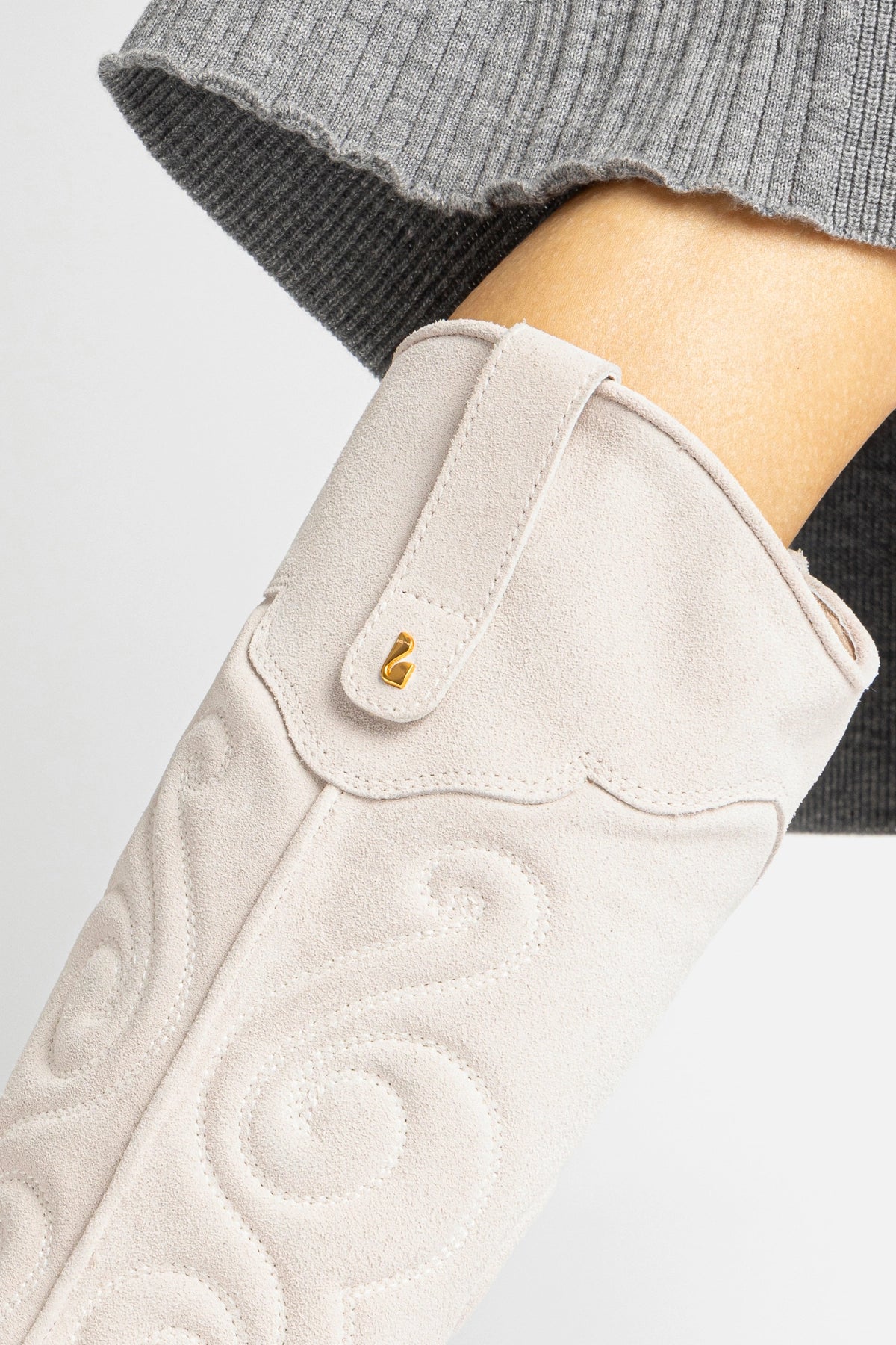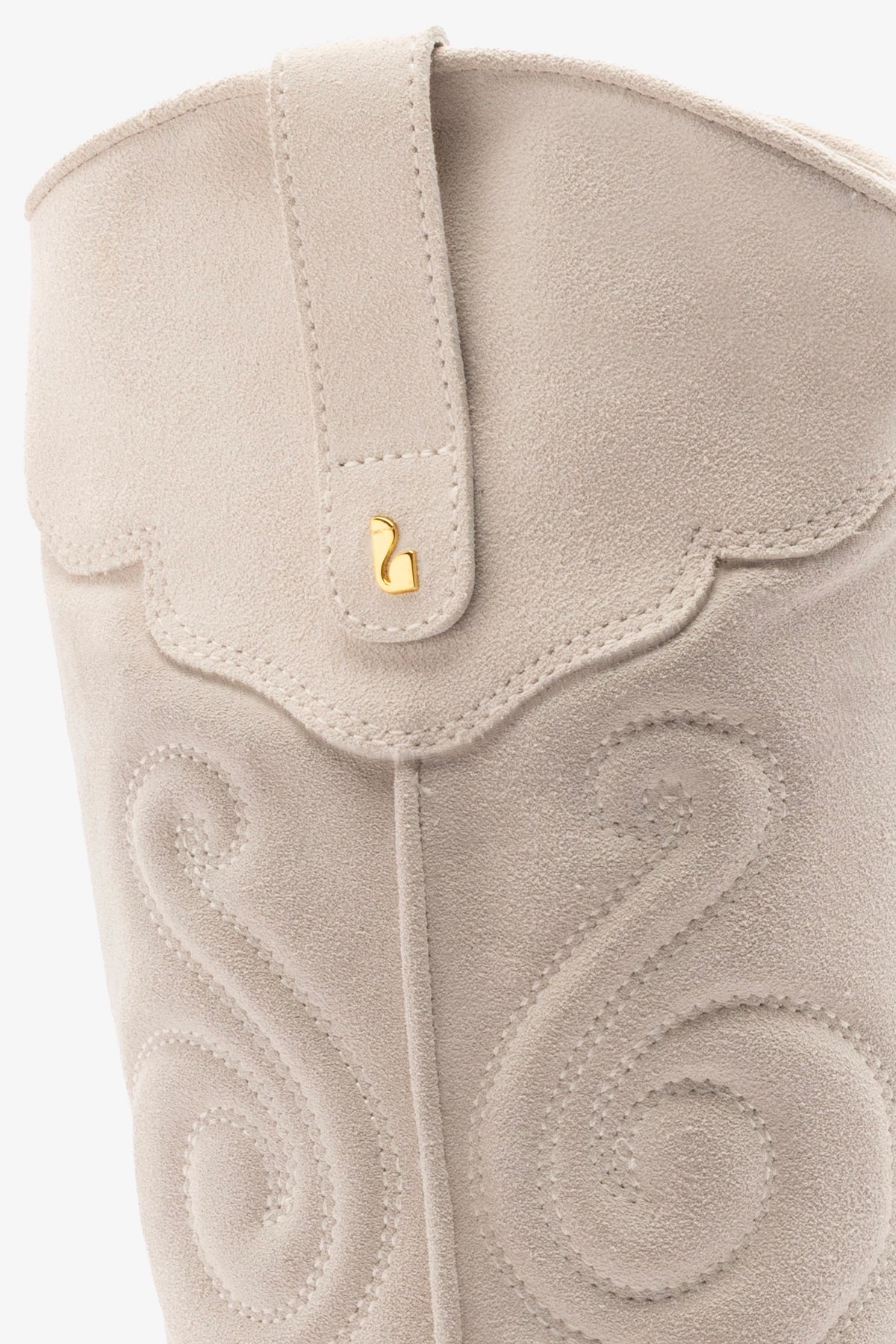 Essa bota cowboy traz a clássica vibe western em uma construção escultural em camurça. Com bico fino, salto bloco baixo e detalhes ousados, é o tipo de bota que te leva longe!