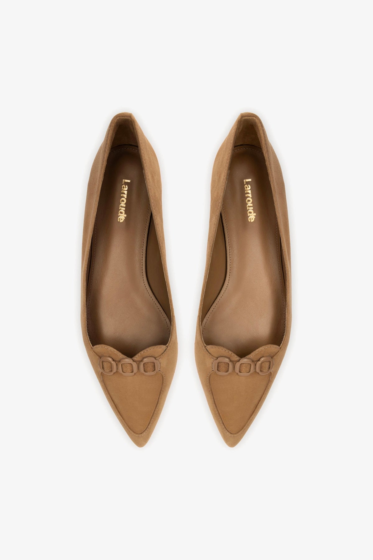 Uma releitura moderna de um essencial atemporal, essa sapatilha  de bico fino combina um shape clássico com detalhes femininos e marcantes. Feito à mão em camurça macia, a sapatilha Audrey castanho apresenta linhas limpas e discretas para um visual polido sem esforço.