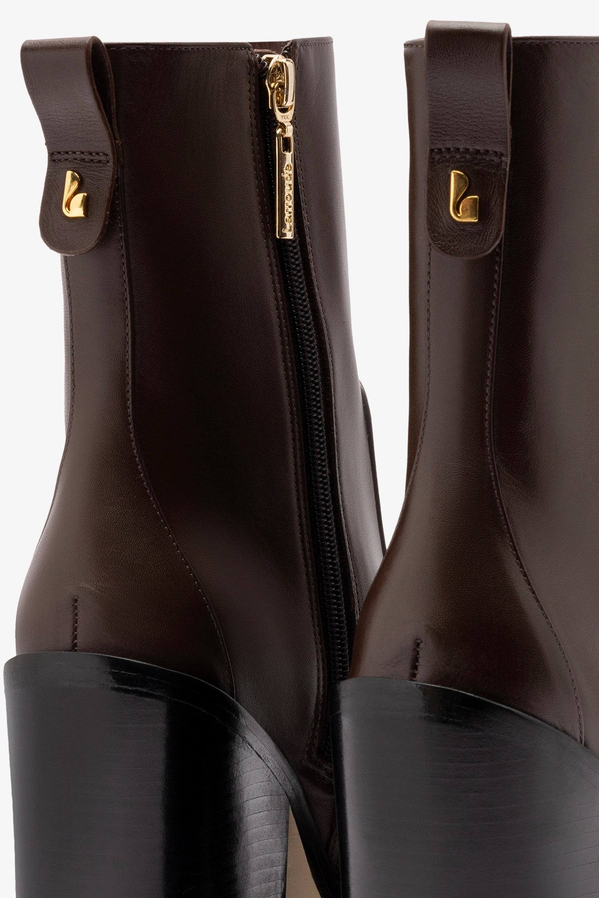 Inspirada em James Dean, a bota James tem o mesmo ar cool do homem que inspirou seu nome. Com cano na altura ideal para usar com calças cropped, ela combina design atemporal, couro marrom e detalhes funcionais, como o puxador traseiro. Um clássico moderno para usar o ano todo!