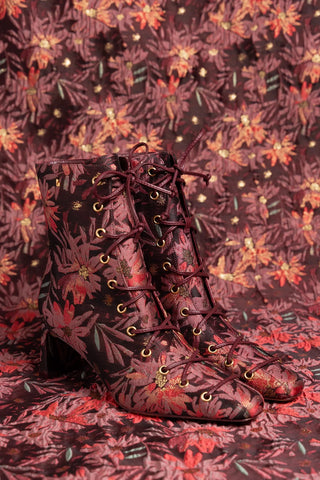 Bota Kate Mini Malha Estampado Marrom e Couro Off White