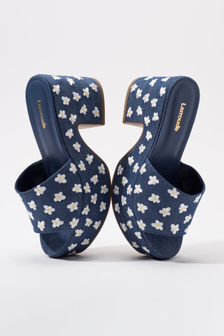 Mule Plataforma Miso Jeans Azul com Bordado Floral