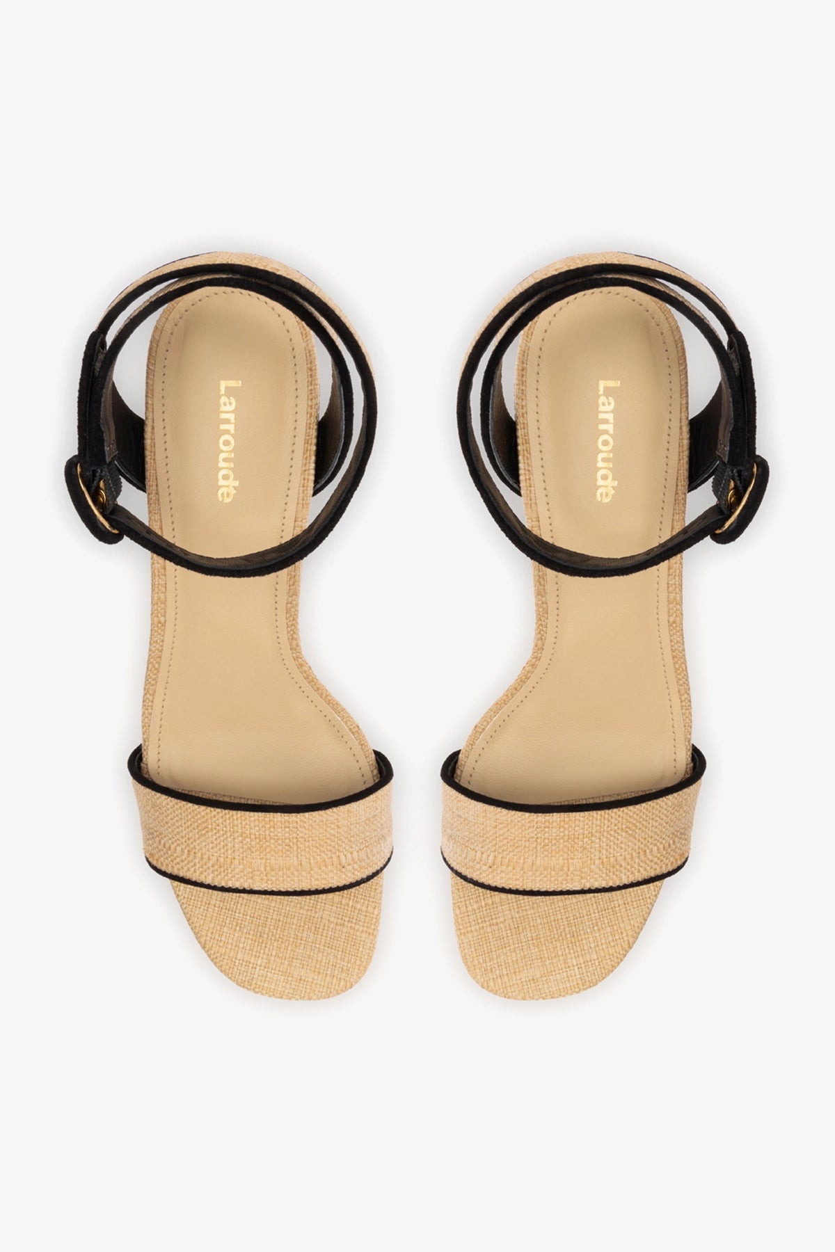 Sandália Plataforma Dolly Low Ráfia Bege e Camurça Preto