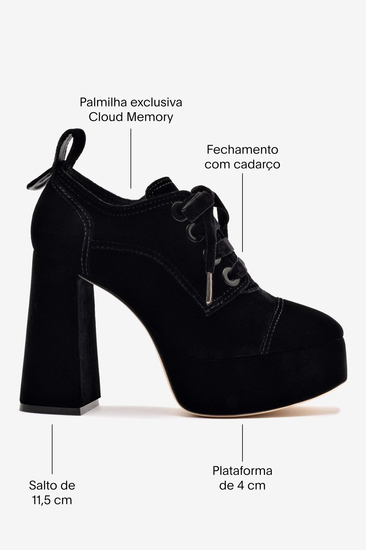 A ankle boot Eleonor em veludo preto chega com aquele ar dark romance irresistível, misturando a vibe rebelde dos anos 90 com um toque glam chic. O veludo italiano premium dá textura e profundidade ao visual, enquanto o salto bloco e a meia-pata garantem altura com estabilidade.