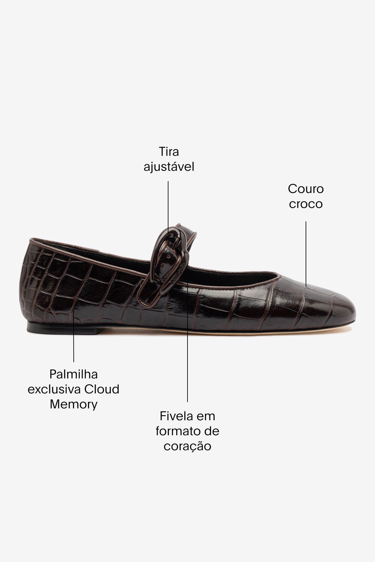Inspirada em um romance shakespeariano, a mary jane Verona é a nossa releitura da tendência das sapatilhas. O couro croco e a fivela de coração super delicada são os detalhes que transformam esse modelo em um sapato essencial.