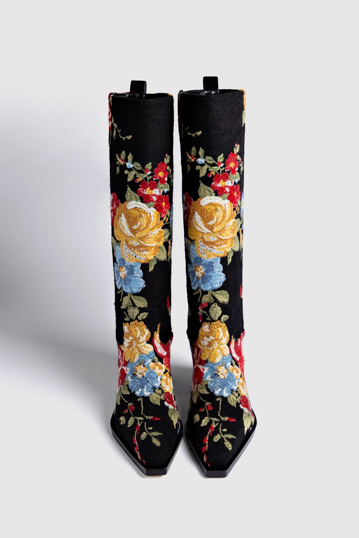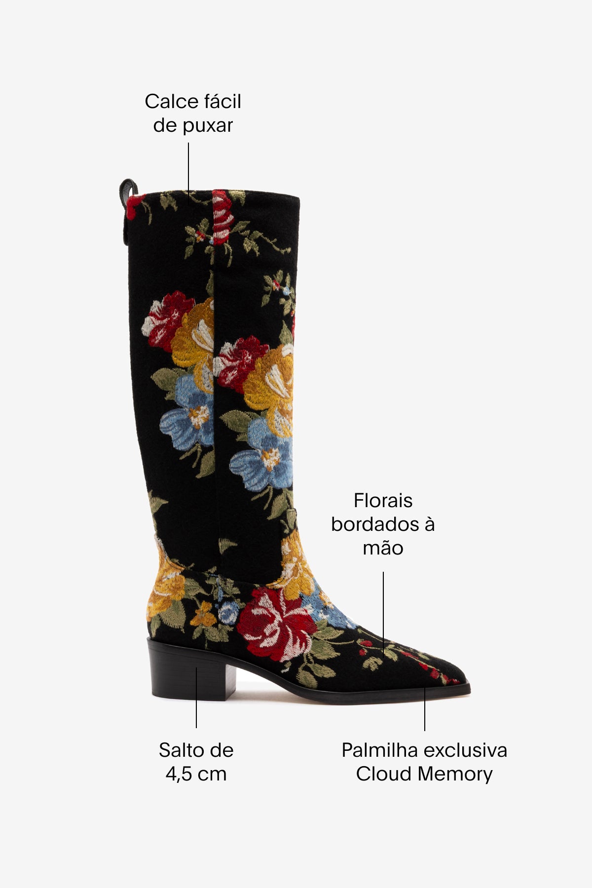 Como parte da nossa contínua parceria com Markarian, estamos muito animadas em trabalhar novamente com a designer Ali O'Neill. A bota best seller Florencia ressurge na lã com estampa floral característica da marca – um item de design colecionável feito para você ser notada, onde quer que vá.