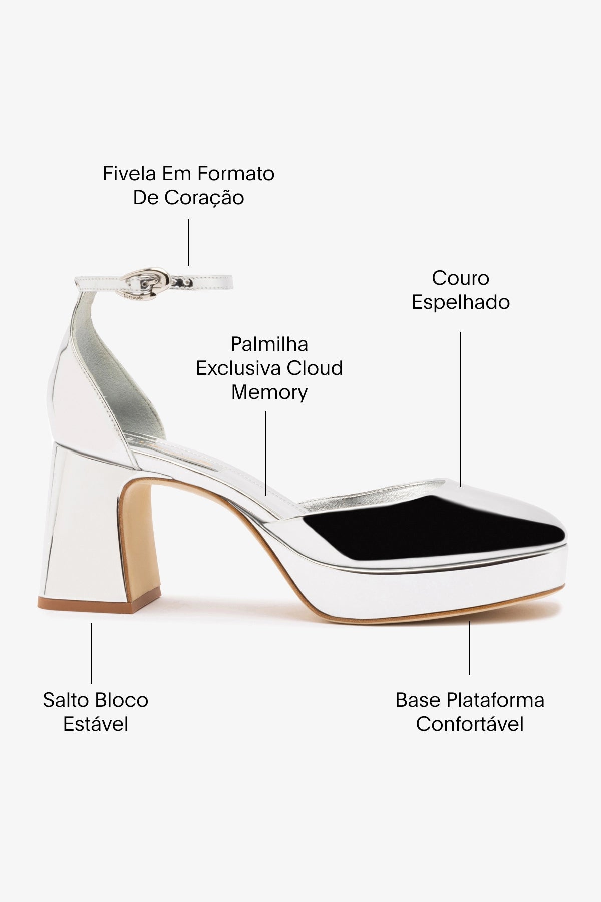 Com a mesma plataforma perfeita da nossa construção best seller Dolly, a sandália Ari Verona Low traz o mesmo elemento preppy, com salto mais baixo e plataforma. Composta por sofisticação e atitude cool, esse modelo em couro espelhado prateado te leva longe.