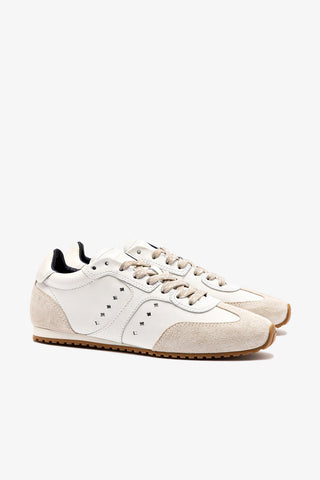 Larroudé x Jonathan Cohen: Bota Tênis Cano Médio Camurça Azul e Cinza e Couro Branco