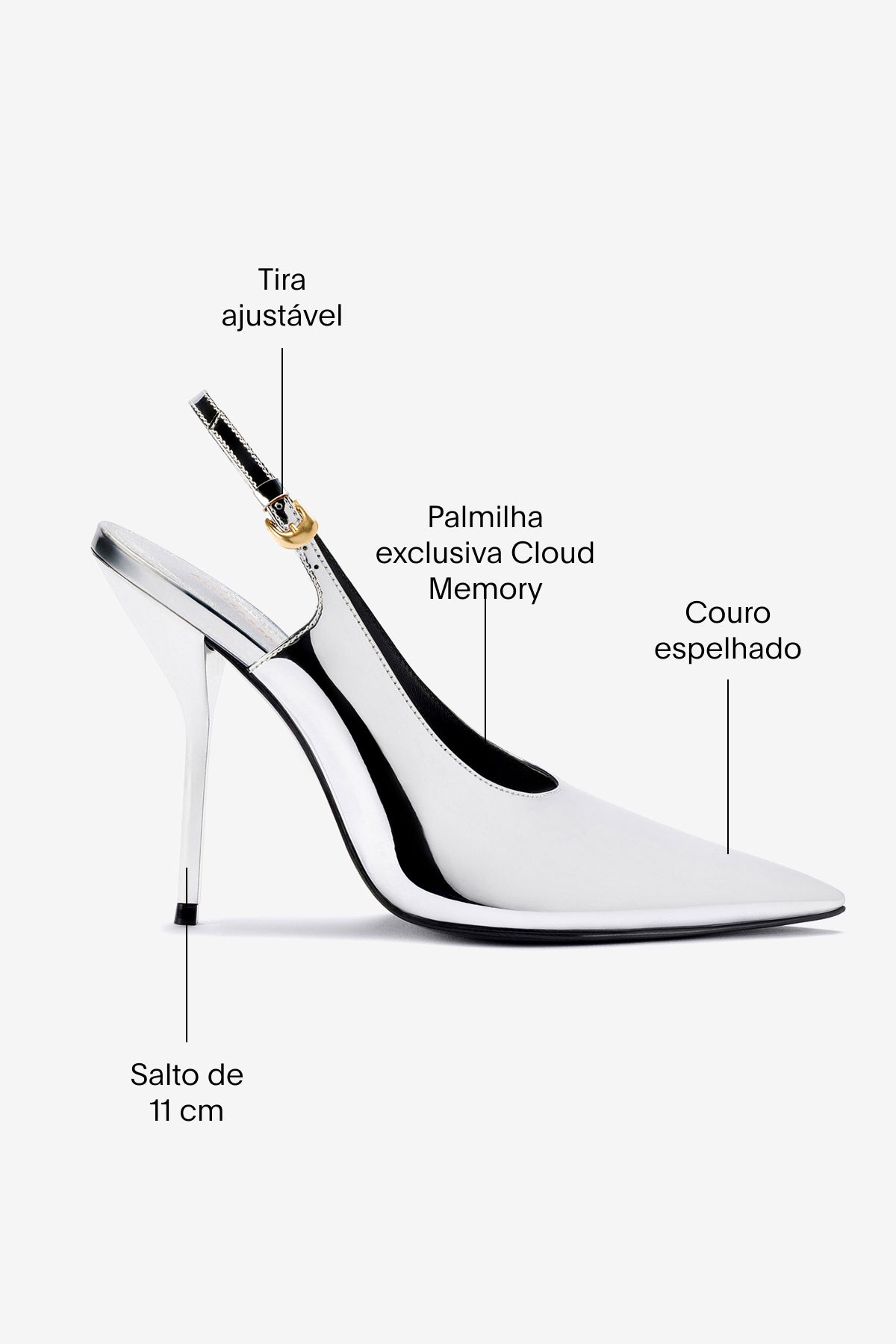 Uma das collabs mais bem-sucedidas da Larroudé nos Estados Unidos desembarcou no Brasil com criações icônicas. Essa versão do nosso slingback em couro prateado espelhado é o auge da elegância e poder – com toda a atitude sexy que as mulheres Altuzarra e Larroudé têm de sobra.