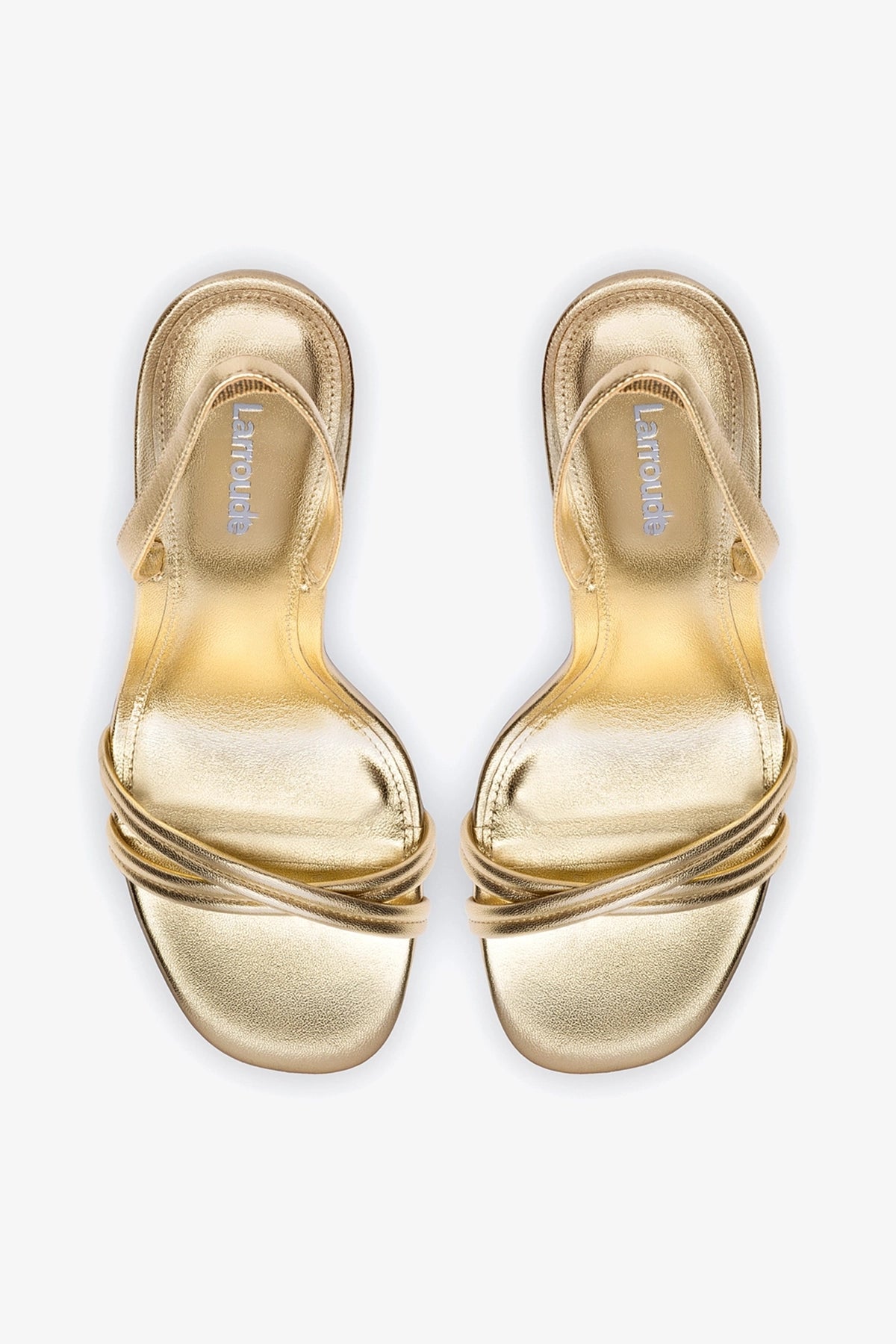 Prepare-se para brilhar com essa sandália de salto fino e discreta. O modelo Annie em couro dourado possui detalhes de design que garantem um visual marcante e sofisticado!