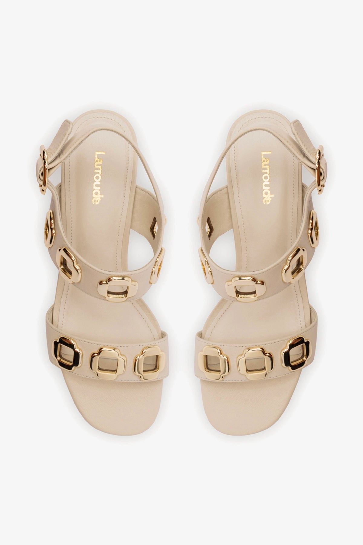 Detalhes metálicos são uma paixão Larroudé, e a sandália flat Milan não é exceção! Com uma estética italiana icônica, os metais robustos decoram a tira dessa sandália clássica em couro off white, perfeita para ser usada durante o dia (e a noite) inteiro.