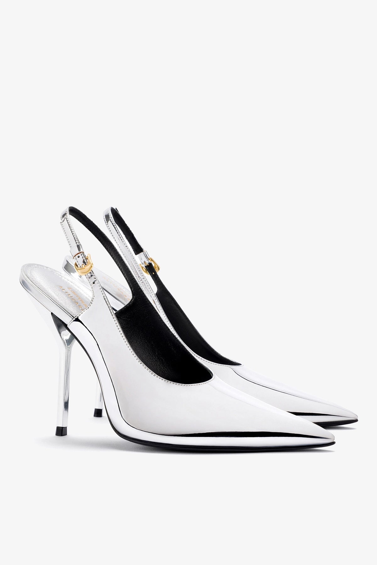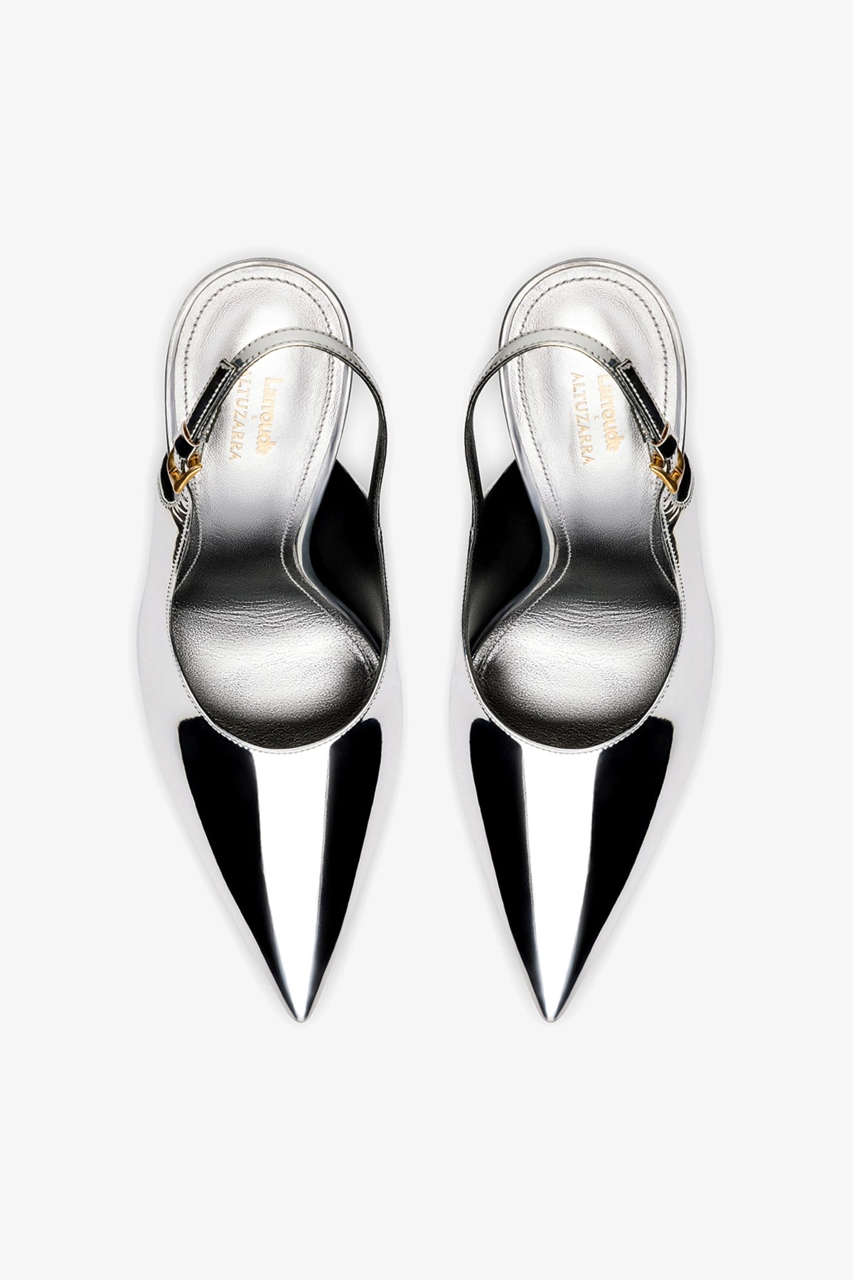 Uma das collabs mais bem-sucedidas da Larroudé nos Estados Unidos desembarcou no Brasil com criações icônicas. Essa versão do nosso slingback em couro prateado espelhado é o auge da elegância e poder – com toda a atitude sexy que as mulheres Altuzarra e Larroudé têm de sobra.