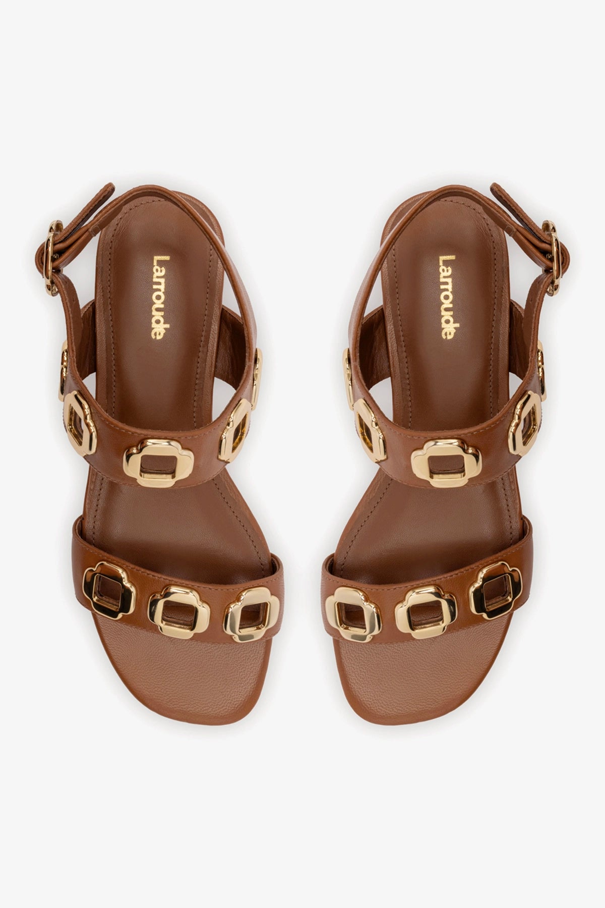 Detalhes metálicos são uma paixão Larroudé, e a sandália flat Milan não é exceção! Com uma estética italiana icônica, os metais robustos decoram a tira dessa sandália clássica em couro caramelo, perfeita para ser usada durante o dia (e a noite) inteiro.