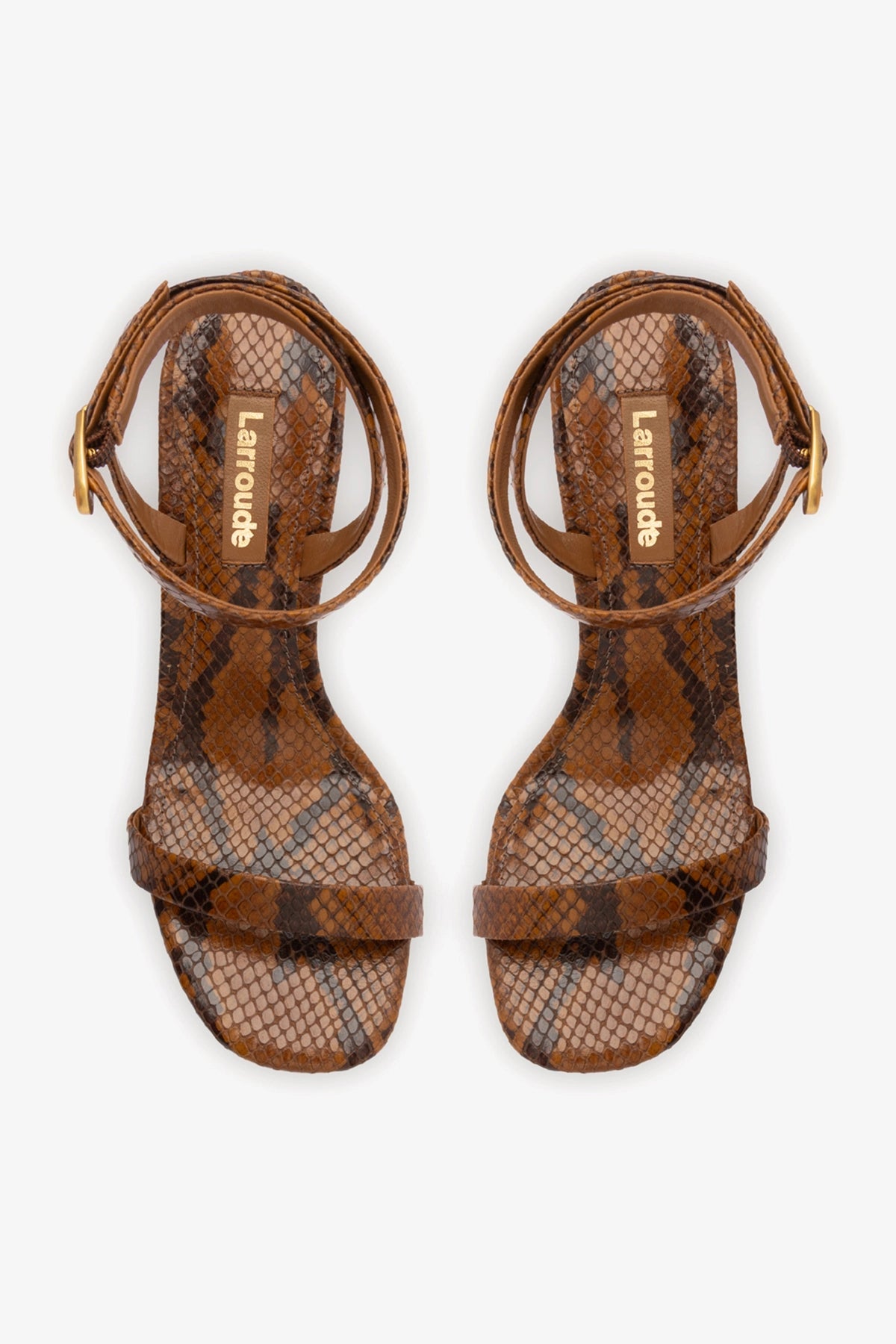 A sandália de tiras clássica que todo closet precisa... e merece. Veronina surge em couro com estampa de cobra com detalhes de design sutis que a destacam de tudo – vale a pena combiná-la com um look especial.