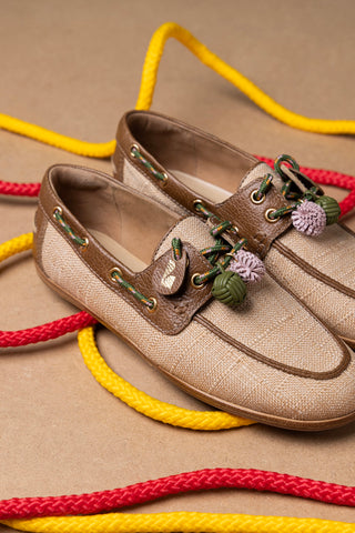 Larroudé x CPPXO: Mocassim Couro Cobra Bege