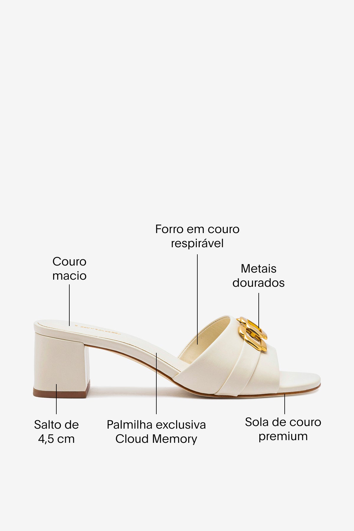 Com palmilha acolchoada e solado em couro premium, é a escolha ideal para os dias quentes – fácil de usar com vestidos fluidos, alfaiataria leve ou jeans.