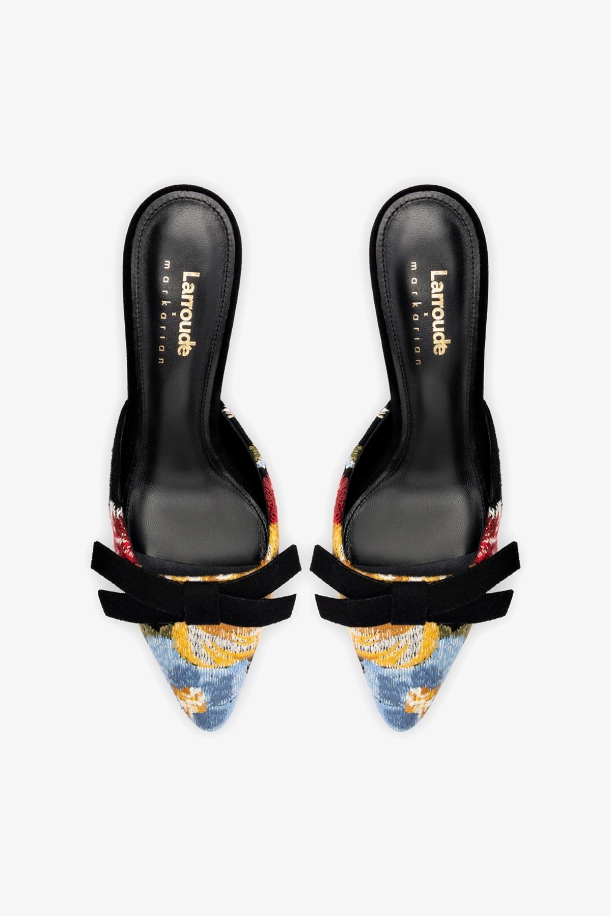 Como parte da nossa contínua parceria com Markarian, estamos muito animadas de trabalhar novamente com a designer Ali O'Neill no próximo capítulo dessa colaboração. Reimaginamos a silhueta da mule Elle Mini, dessa vez em lã com estampa floral característica da marca – um item de design colecionável feito para você ser notada, onde quer que vá.
