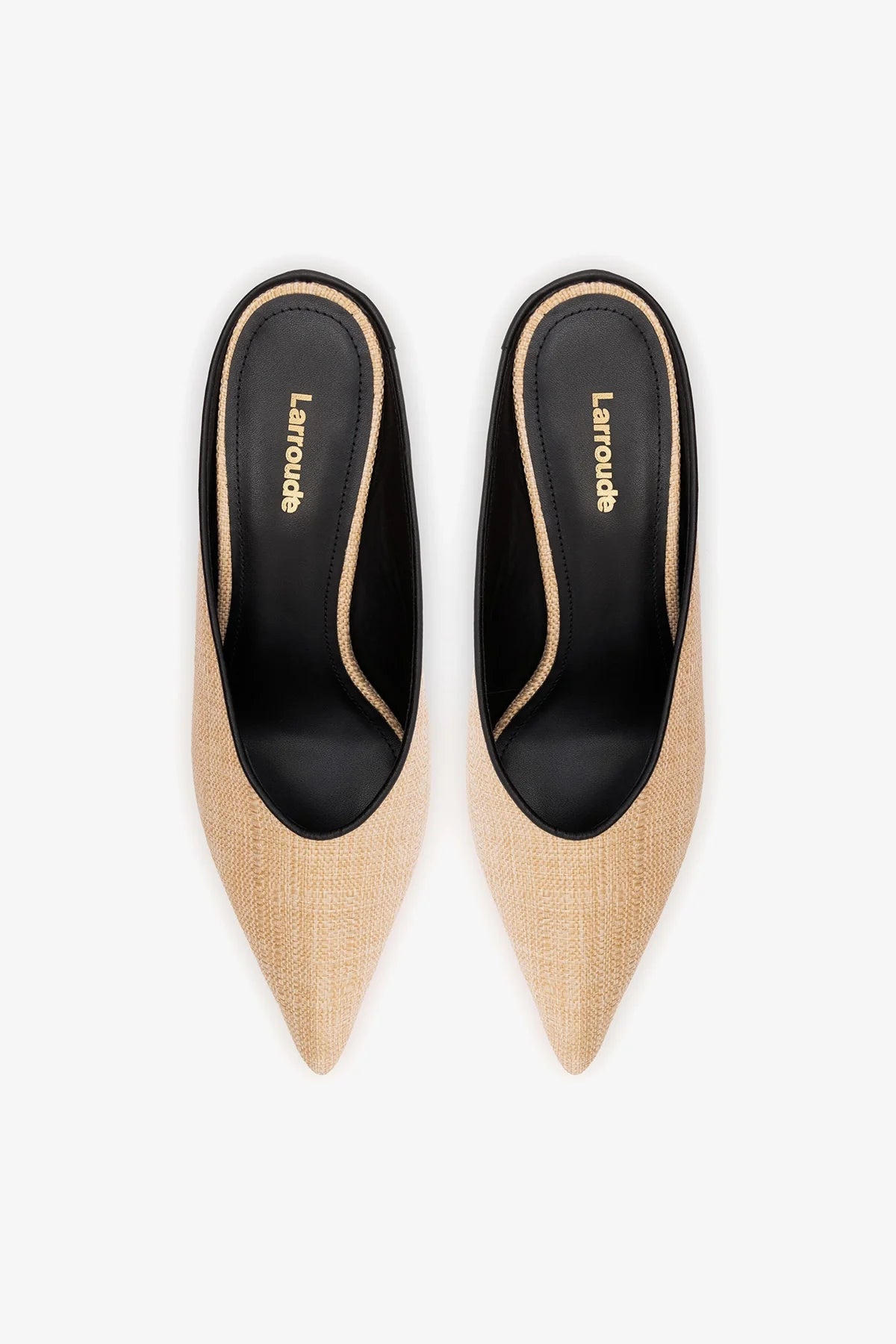Mule de bico fino em ráfia natural, com design clean e salto baixo em cunha que garante conforto no uso diário. A silhueta minimalista alonga o visual e torna a peça fácil de combinar, do casual ao mais alinhado.