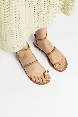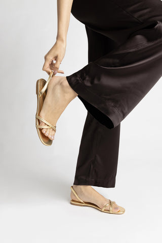 Sandália Flat Milan Camurça Caramelo e Tachas Dourado