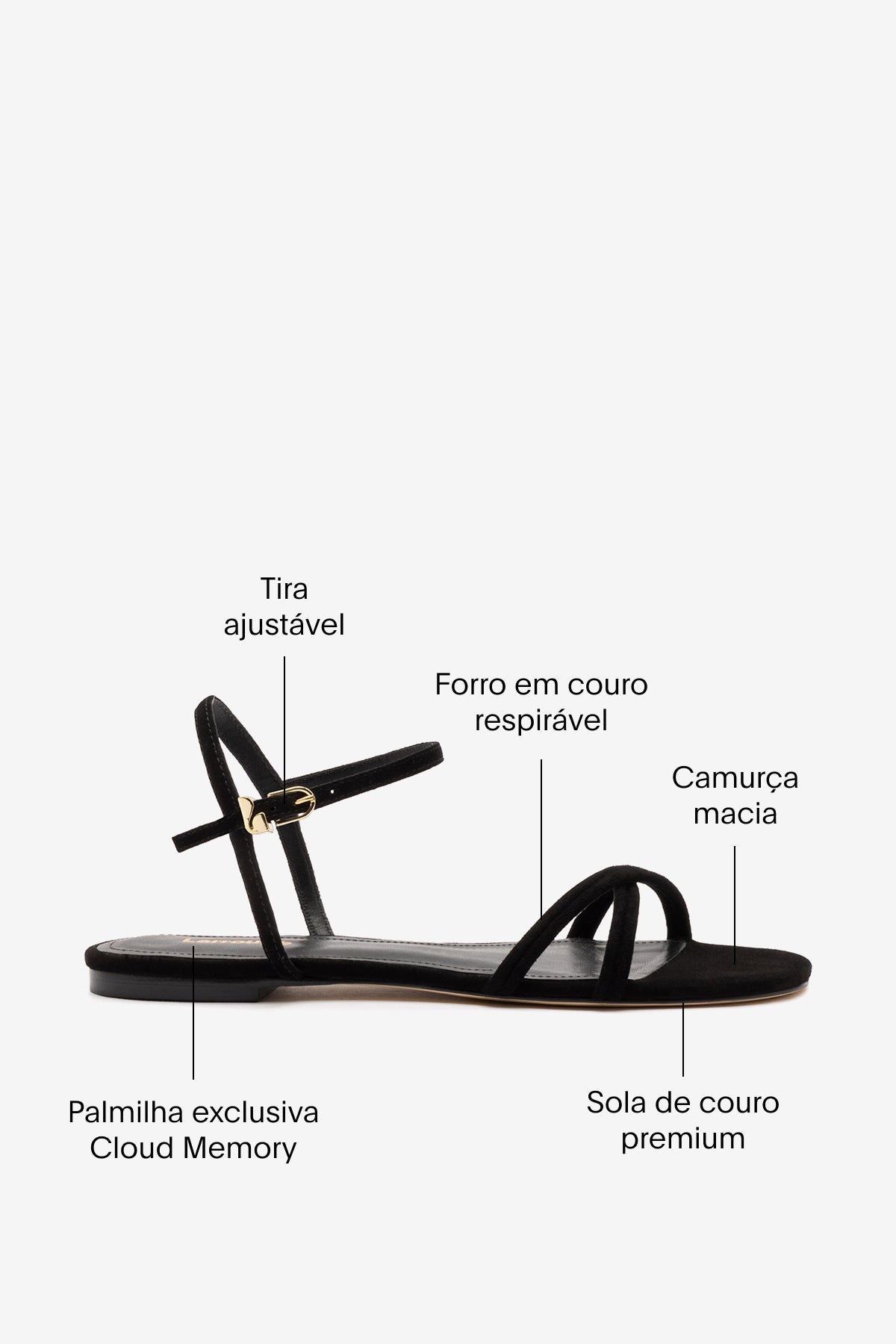 Annie é uma daquelas sandálias que funcionam com tudo – leve, atual e cheia de presença. O modelo traz tiras finas em camurça que abraçam o pé com conforto, enquanto o fecho no tornozelo garante ajuste seguro para o dia todo.