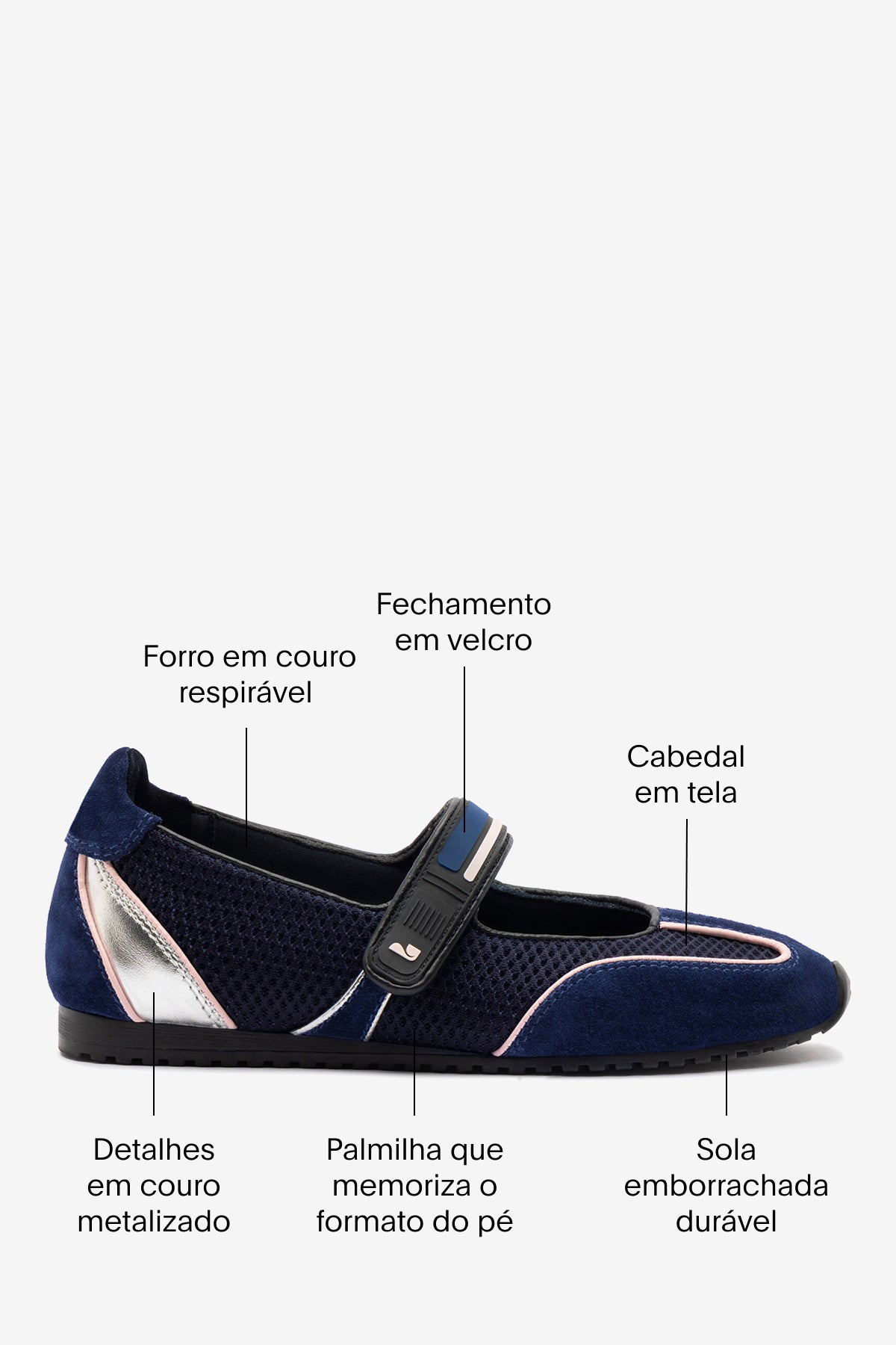 A sapatilha Devon traduz a tendência das sporty ballet flats em uma leitura moderna e atual. A combinação de tela respirável com camurça cria leveza e textura, enquanto a tira no cabedal reforça o visual esportivo e funcional. Um modelo pensado para quem busca conforto no dia a dia com um toque fashion e contemporâneo.