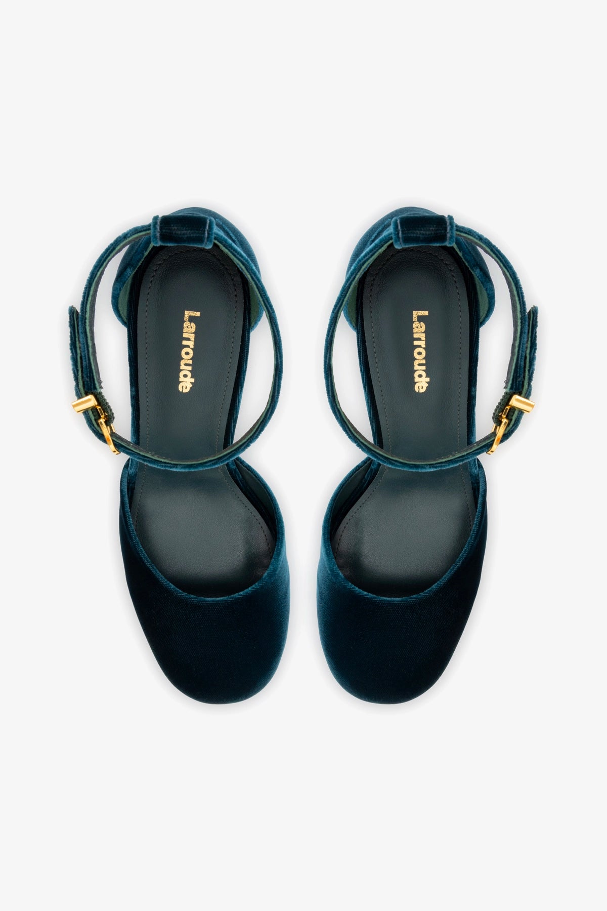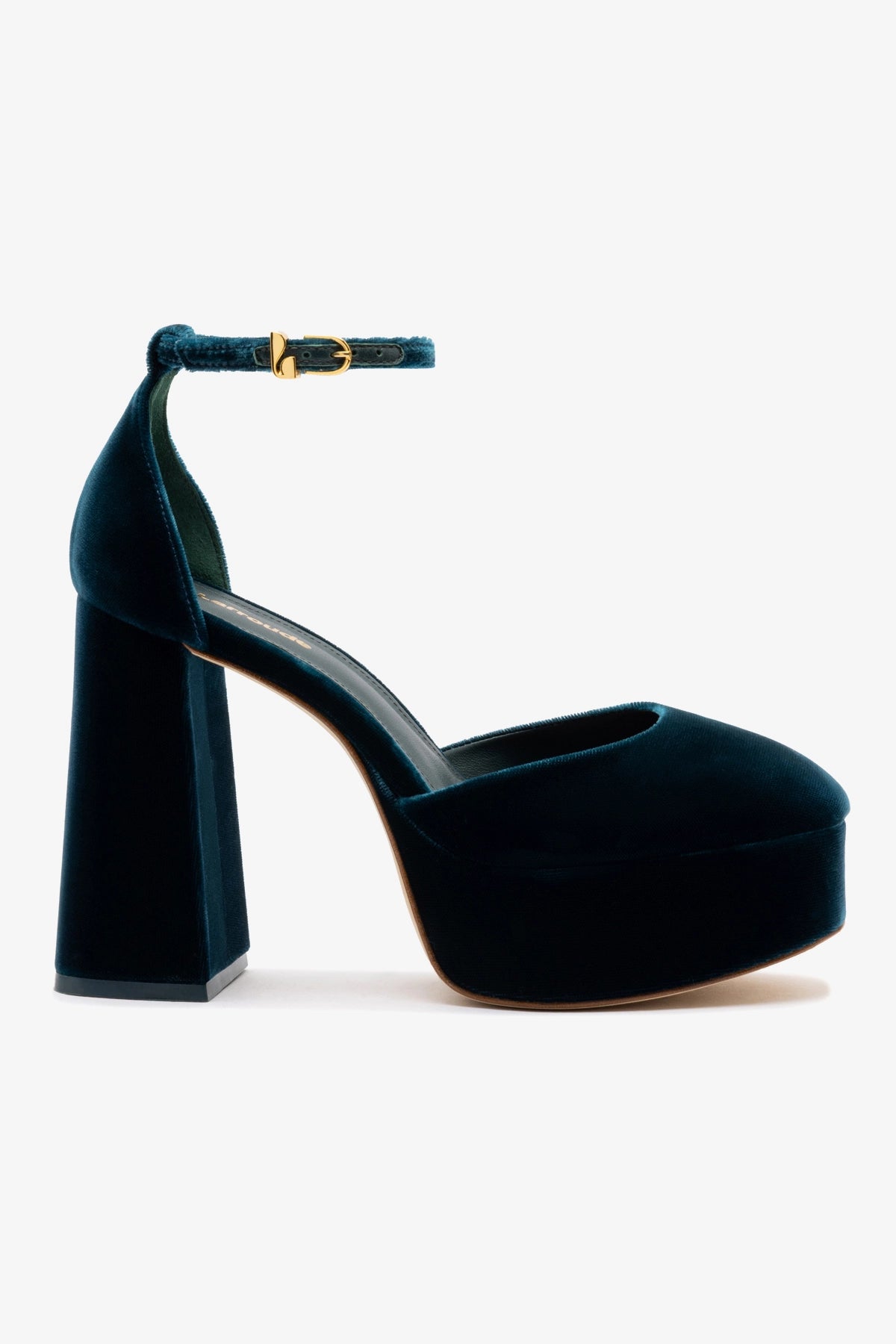 Com um quê de anos 70 e uma dose de ousadia, a sandália Ari é o statement que faltava no seu closet. Feita em veludo premium, ela eleva qualquer look com sua plataforma imponente e salto bloco poderoso. A silhueta dramática e a fivela delicada no tornozelo garantem o equilíbrio perfeito entre o clássico e o moderno.