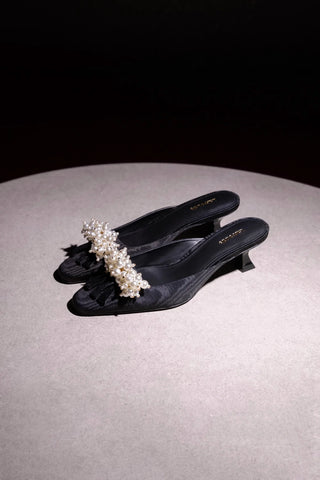 Larroudé x Markarian: Bota Lã Preto e Bordado Floral