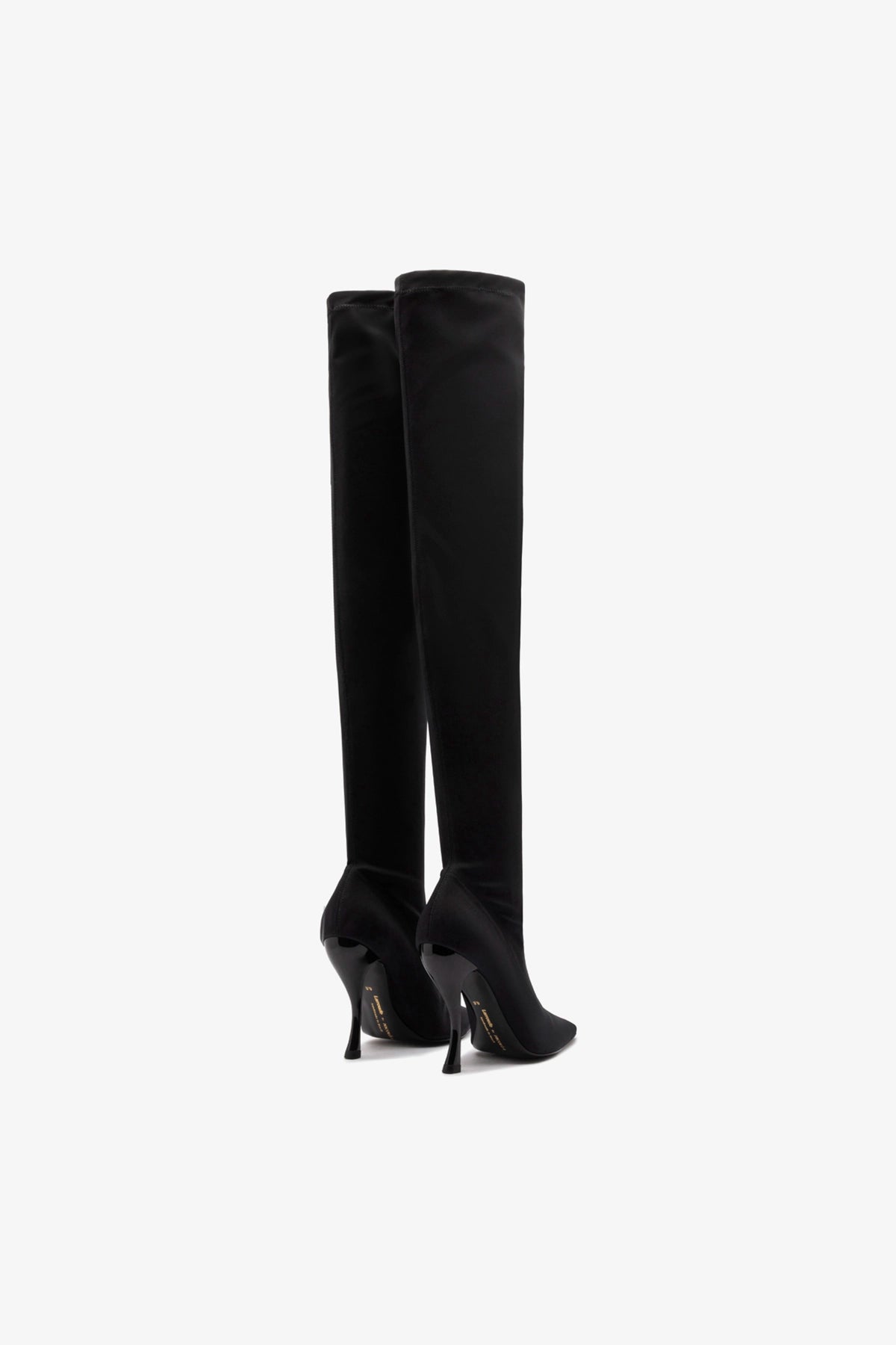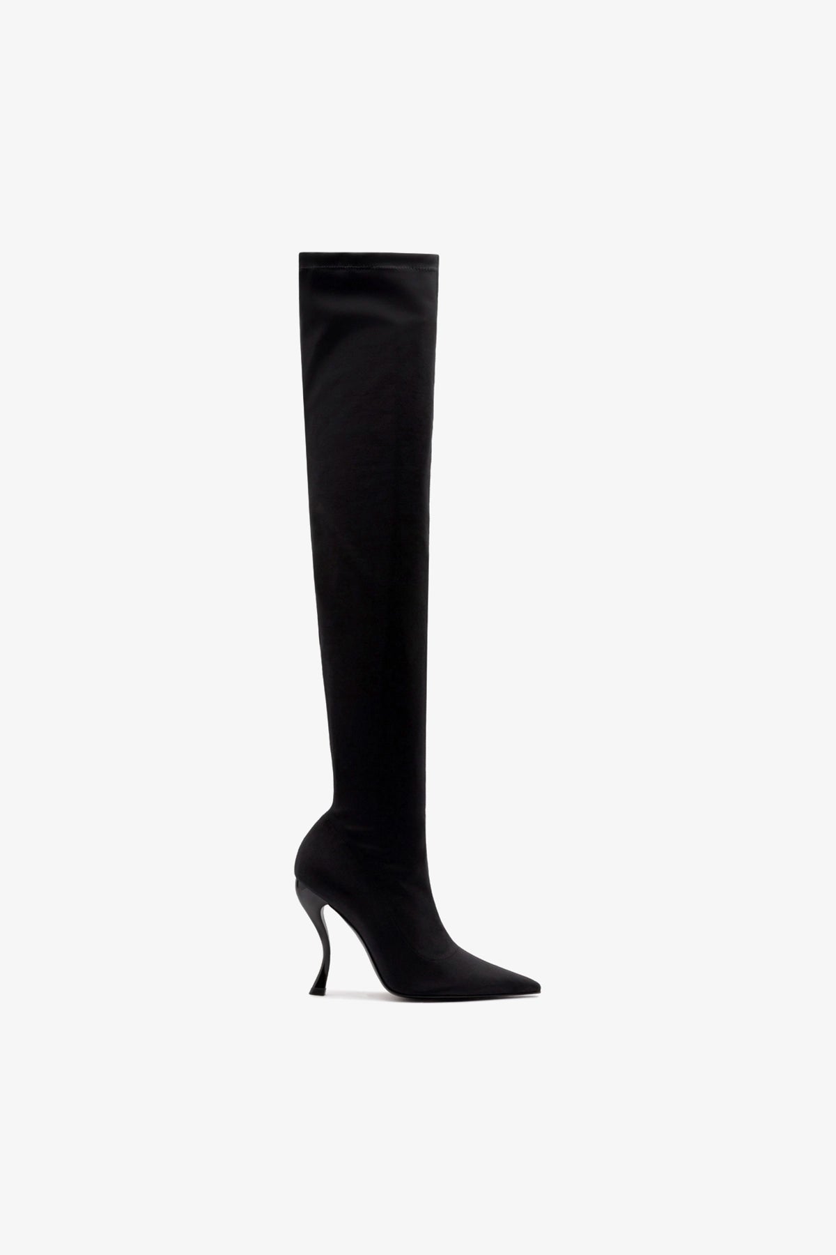 As linhas arquitetônicas do jovem designer italiano Nicoló Beretta encontram a criatividade da Larroudé em uma collab exclusiva. Com um design icônico e dramático, a bota Anastasia une o conforto da lycra, que se ajusta à perna como uma segunda pele, com a sensualidade do bico fino e a elegância de um salto escultural.