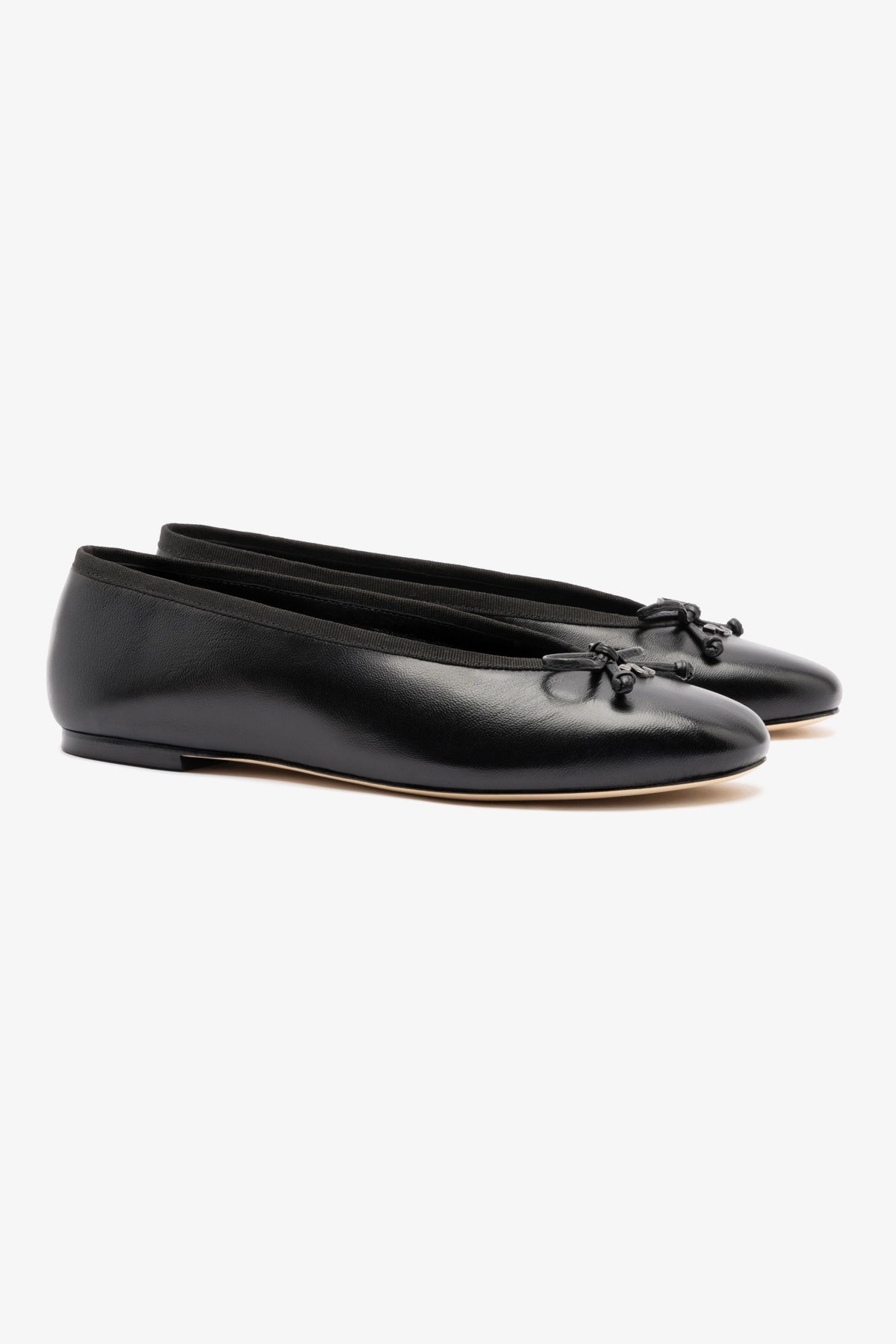 Um ícone do nosso closet, a sapatilha Pavlova foi reimaginada em um couro preto super macio. Com seu bico arredondado elegante e um delicado laço amarrado à mão, esse é o tipo de par atemporal que eleva qualquer look.