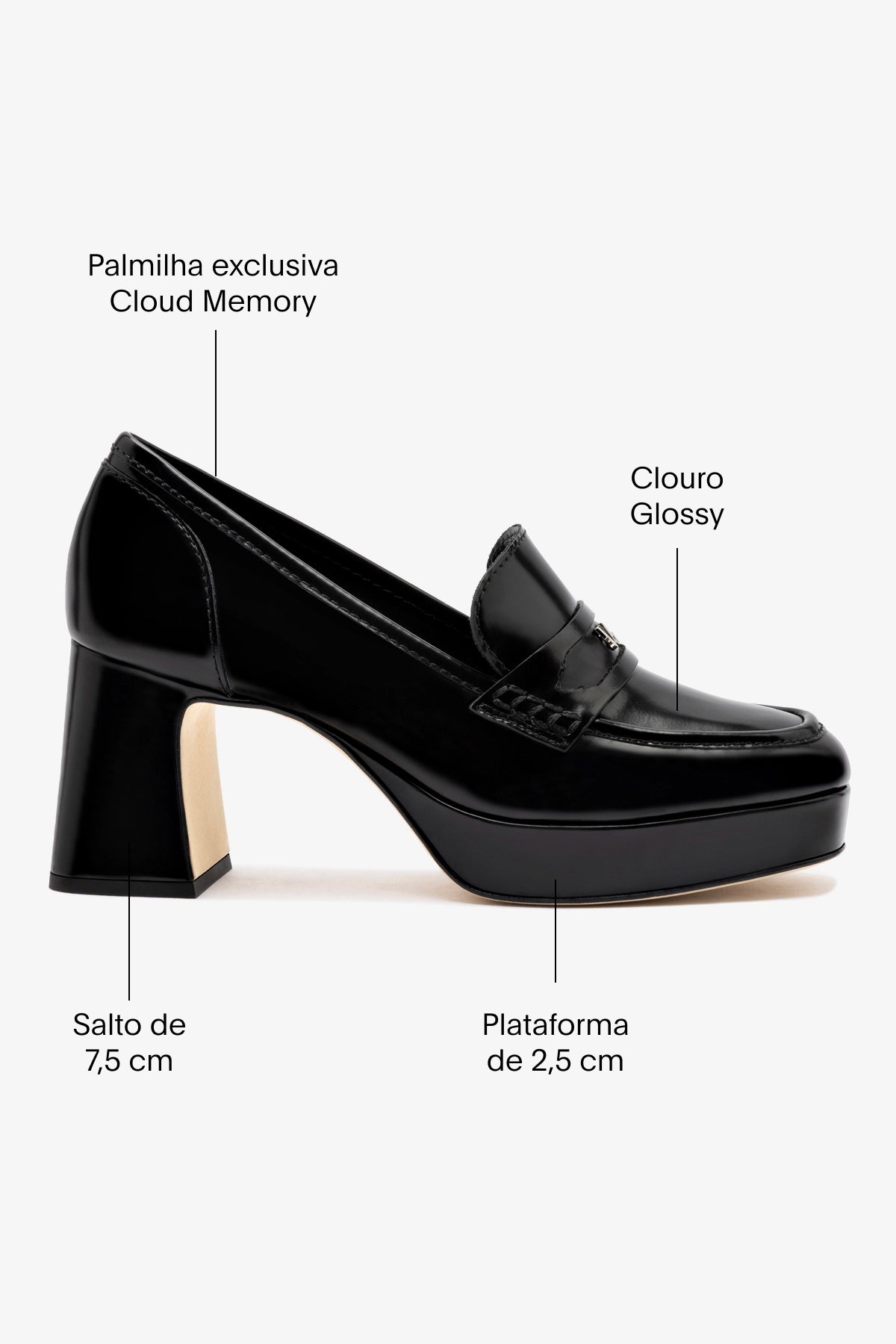 Uma nova interpretação da nossa icônica Suki. Com salto bloco robusto e plataforma, essa versão traz ainda mais atitude e conforto, sem perder a essência da clássica loafer. Ideal para quem quer altura extra sem abrir mão da estabilidade, é o sapato que transforma qualquer look – do jeans ao vestido.