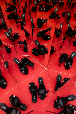 Larroudé x Angelica Hicks: Slingback Beaded Seda Preto e Bordado Dourado