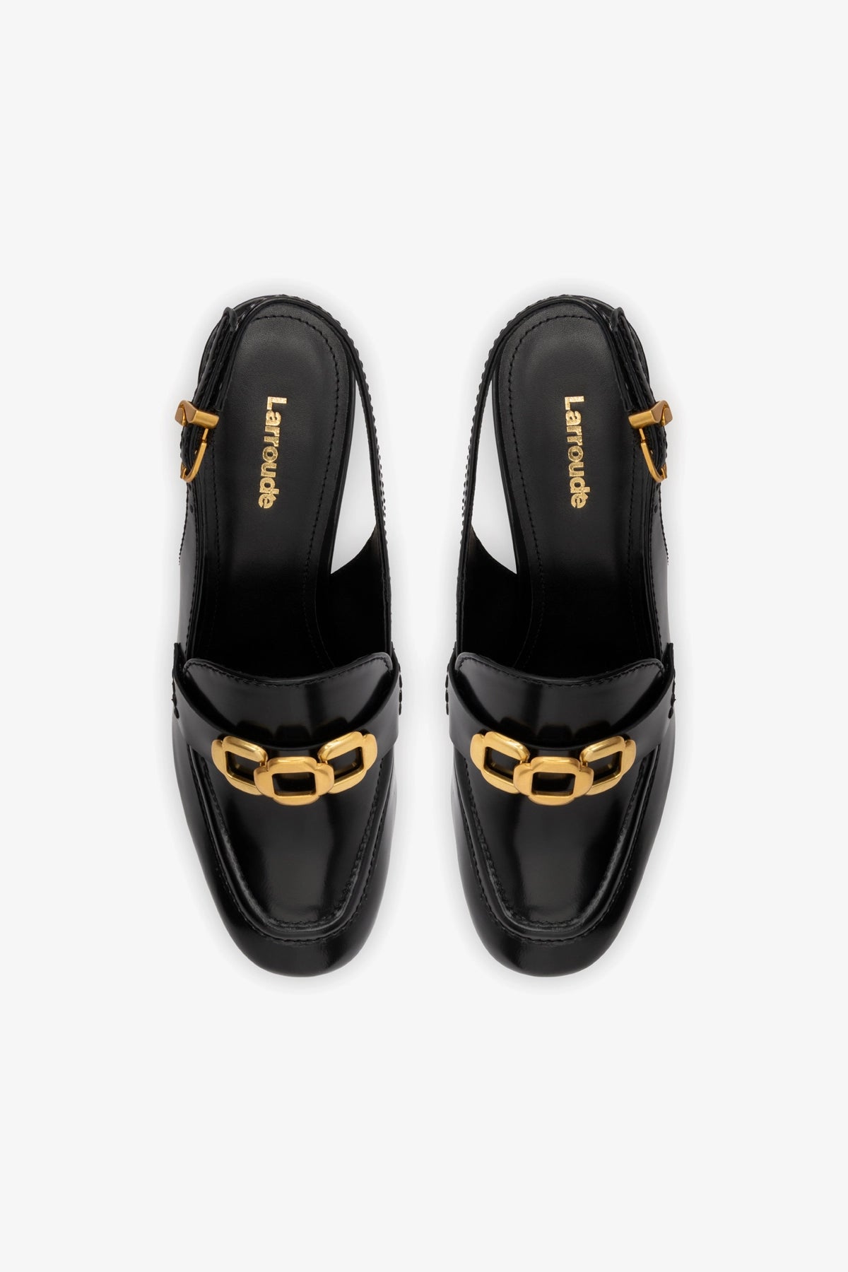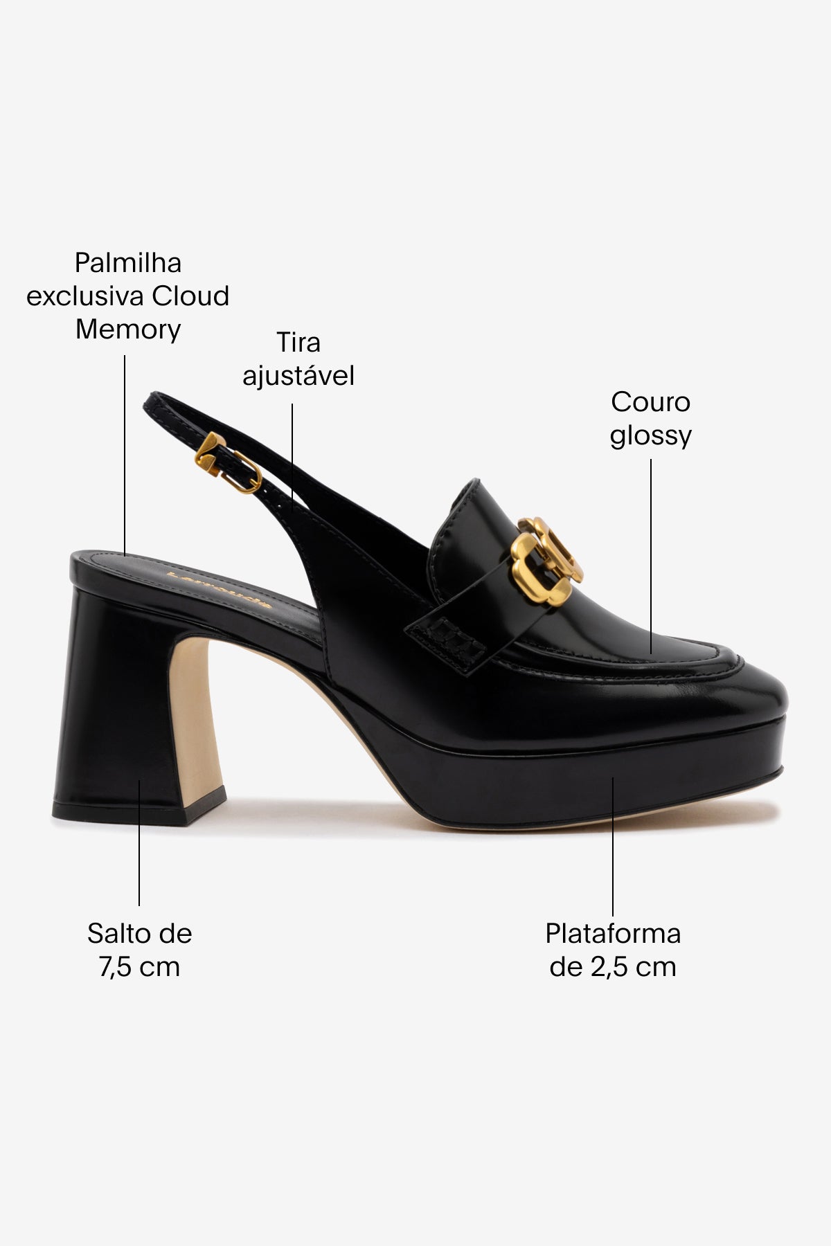 Harrington Low é a nova versão do nosso slingback best seller, agora com um salto mais baixo e a mesma plataforma poderosa. Em couro glossy com a fivela dourada que já virou assinatura, traz um visual robusto, marcante e cheio de atitude.