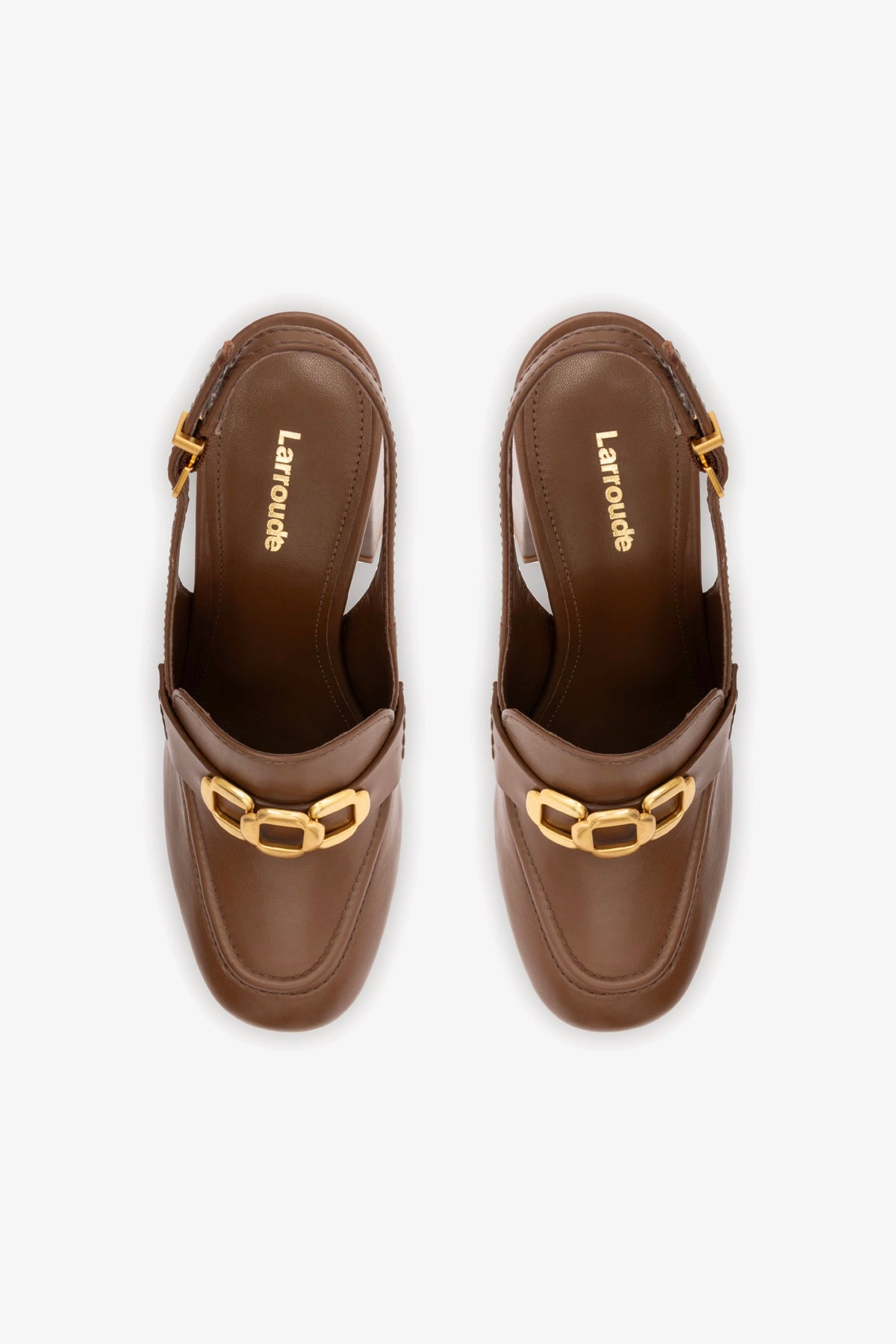 Harrington Hi é a evolução fashion da nossa icônica bota, agora em versão mocassim slingback com plataforma poderosa. Em couro marrom e com a fivela dourada que já virou assinatura, ele traz um visual robusto, marcante e cheio de atitude.