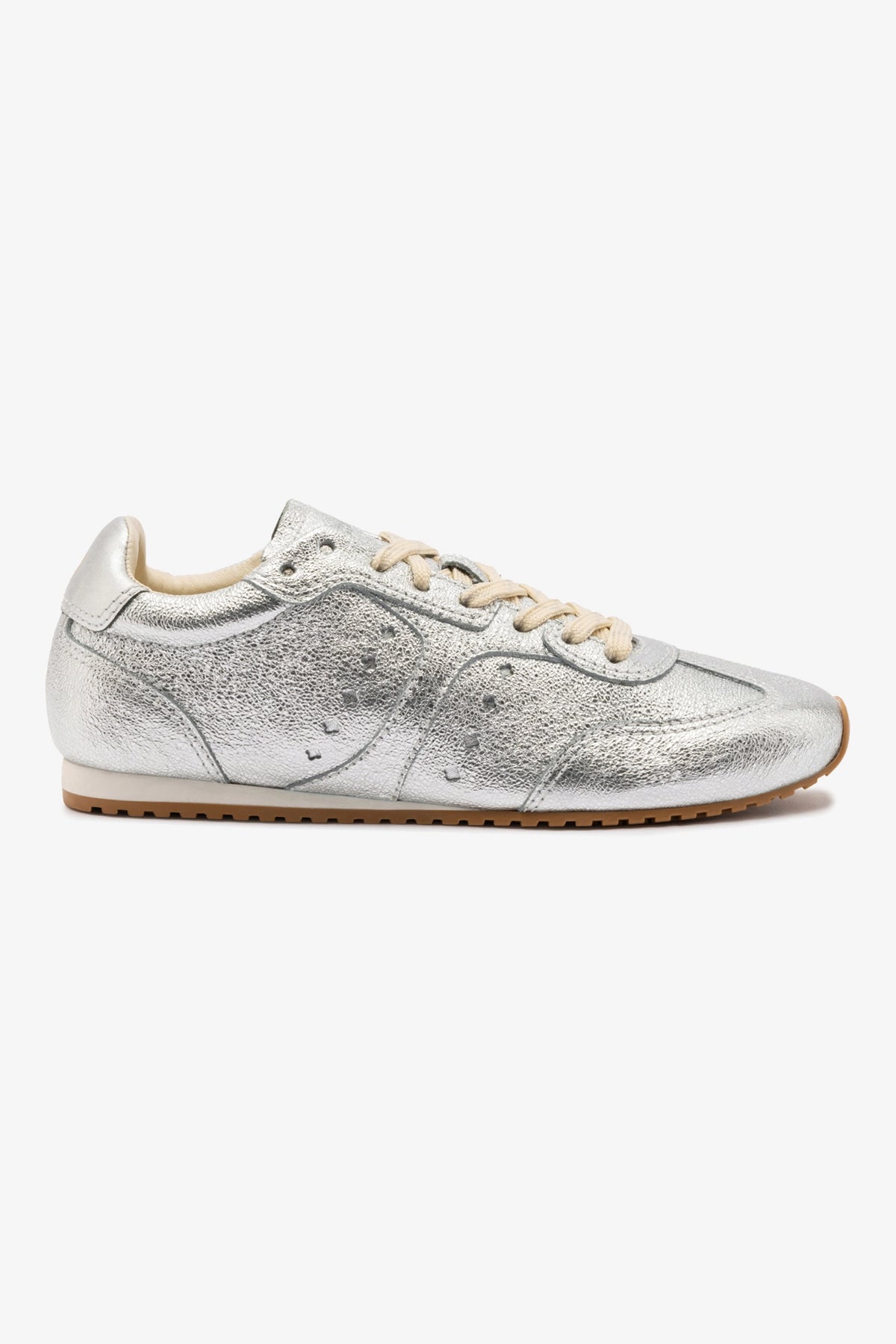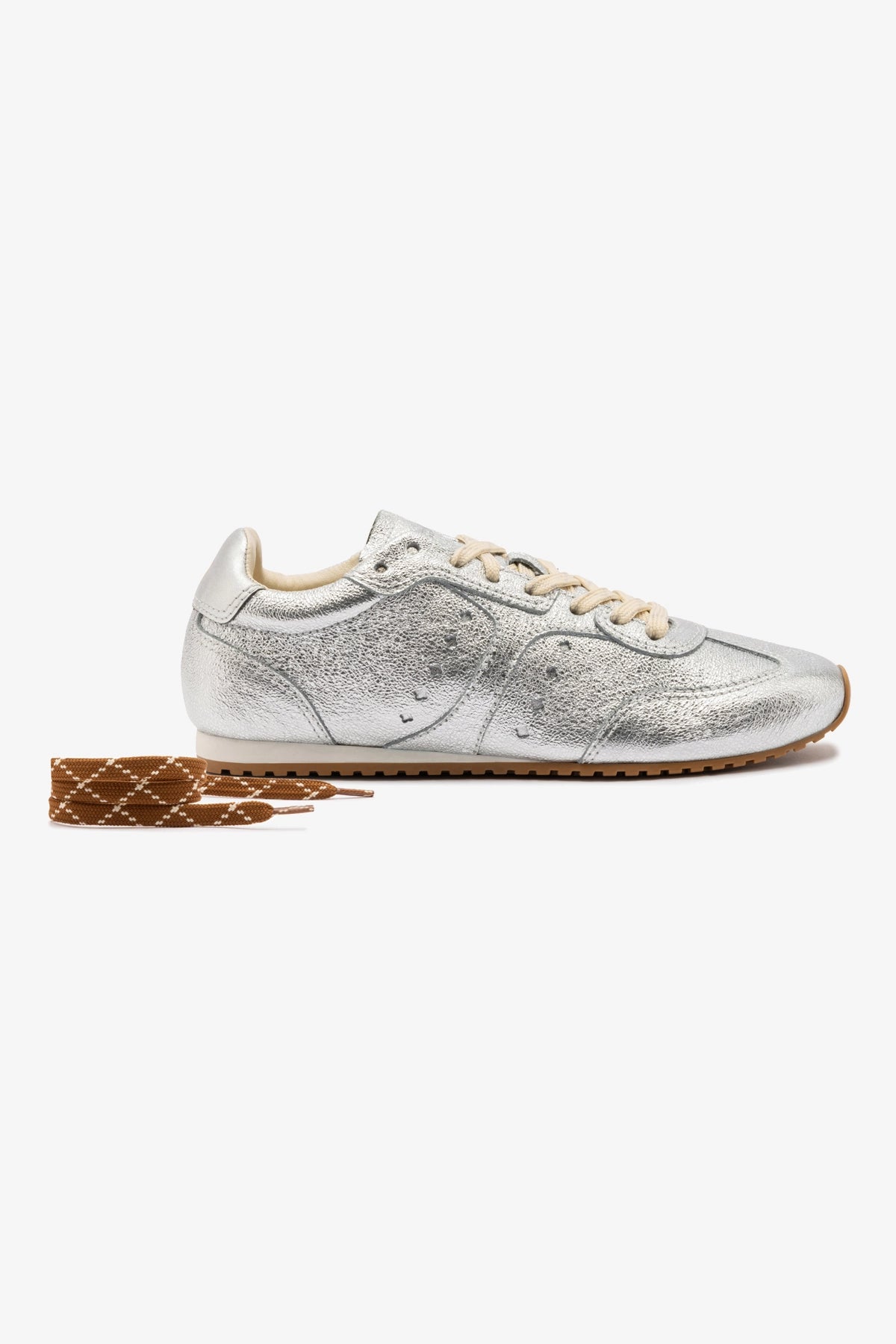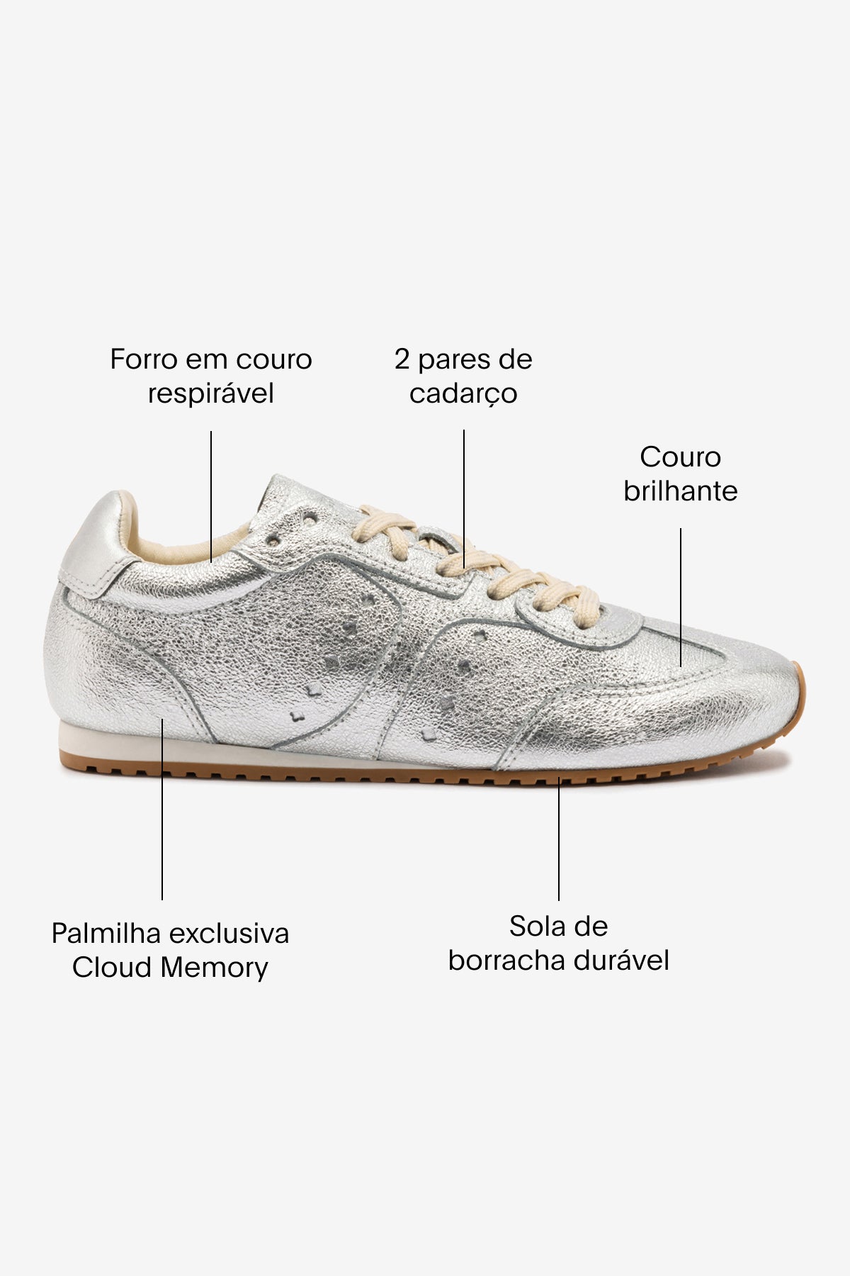 Bem-vinda à nossa era atlética! O nosso tênis best seller Stella é a prova de que conforto e estilo podem coexistir – e se destacar. Agora em couro prateado brilhoso, traz um toque ousado a qualquer look, da rotina urbana a escapadas no fim de semana.