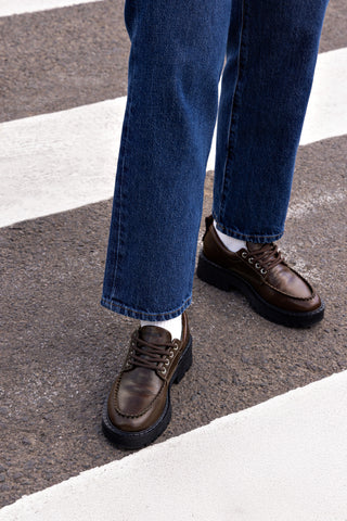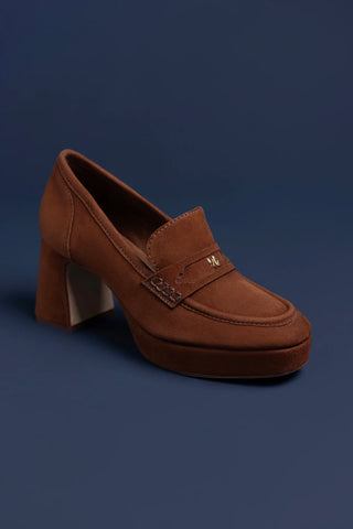 Bota Plataforma Dolly Low Wooden Camurça Marrom