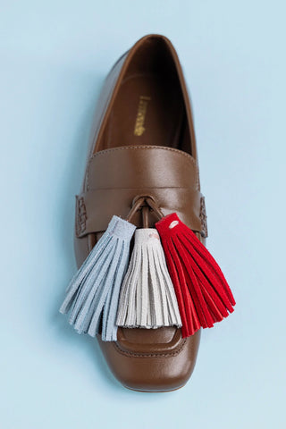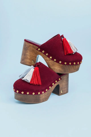 Mule Clog Plataforma Miso Wooden Tassel Camurça Bordô