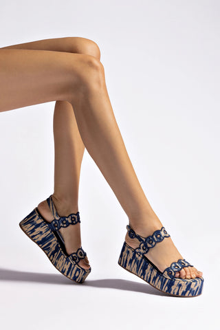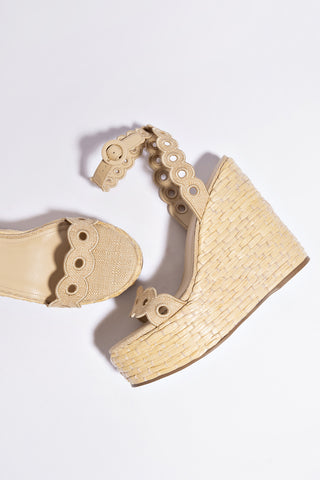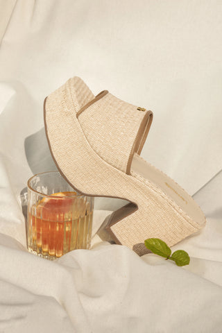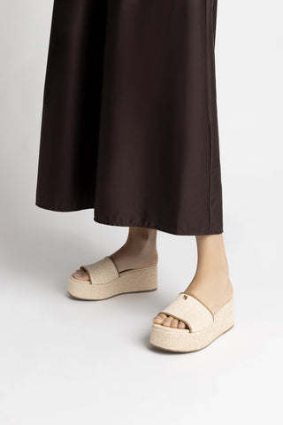 Sandália Anabela Yves Verona Ráfia Natural e Couro Bege