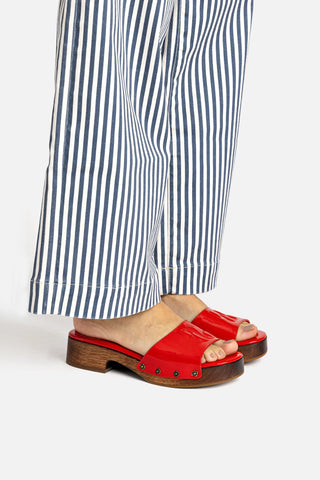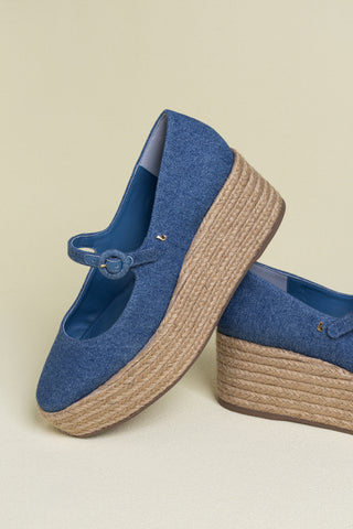 Mule Plataforma Miso Couro Azul e Couro Off White