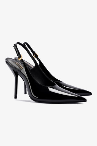 Larroudé x Altuzarra: Slingback Couro Verniz Preto