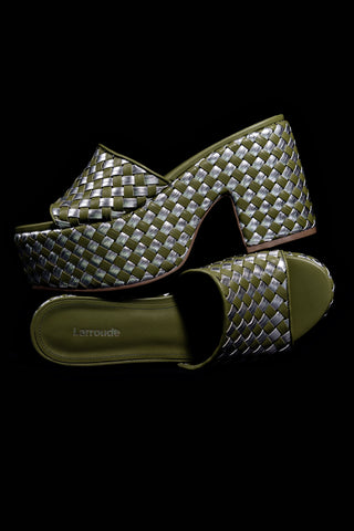 Mule Plataforma Miso Couro Verde e Couro Prateado