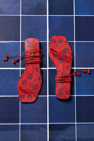 Flatform Gio Ráfia Bege e Vermelho Bordado Floral