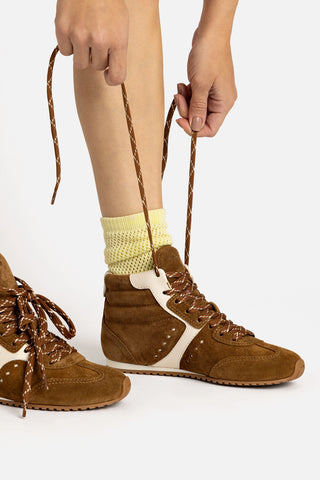 Tênis Cano Médio Stella Camurça Marrom e Couro Off White