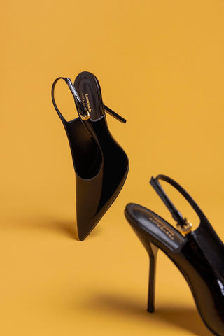 Larroudé x Altuzarra: Slingback Couro Verniz Preto