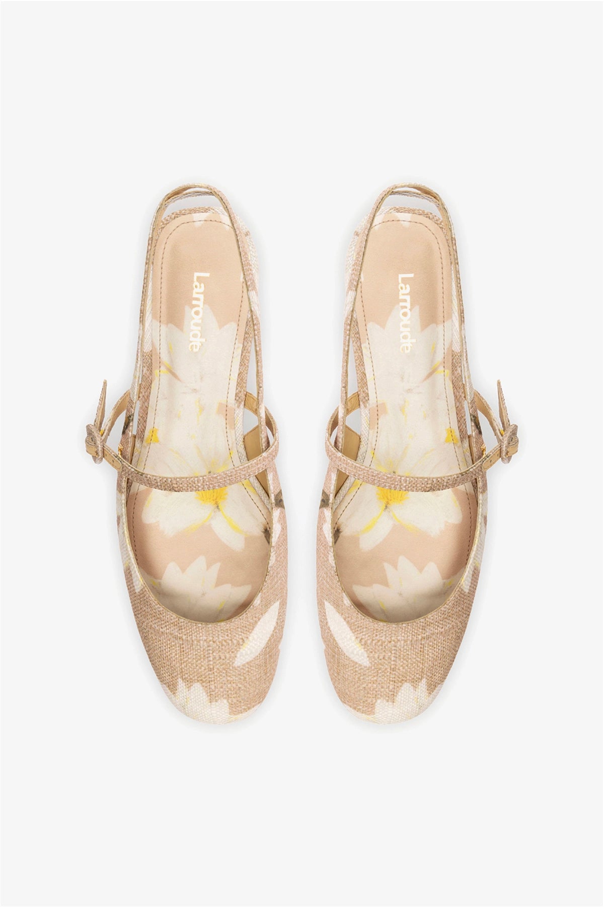 O clássico e feminino slingback Georgina foi reimaginado nessa versão flat super comfy, em ráfia com estampa de flor de lótus. Suas tiras ajustáveis permitem que você customize o calce ao seu pé.