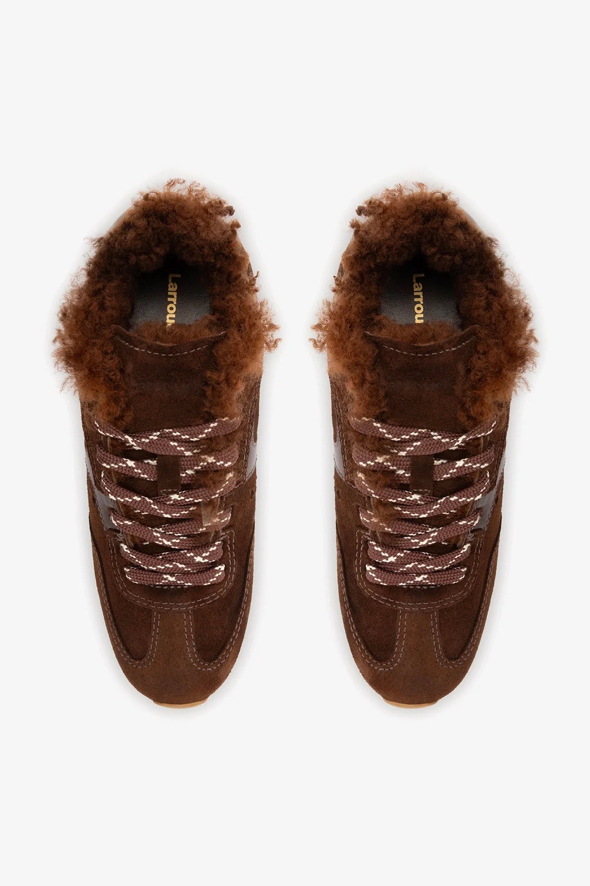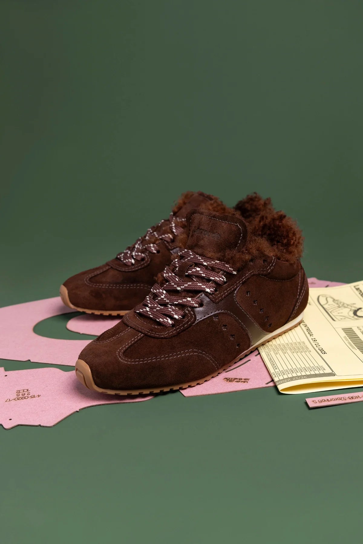 A versão mais aconchegante do tênis Stella chegou. Com uma estética sporty e um toque cozy irresistível, traz cabedal em couro camurça marrom e forro de lã natural aparente. É o modelo perfeito para quem busca conforto imediato com estilo urbano e descomplicado.