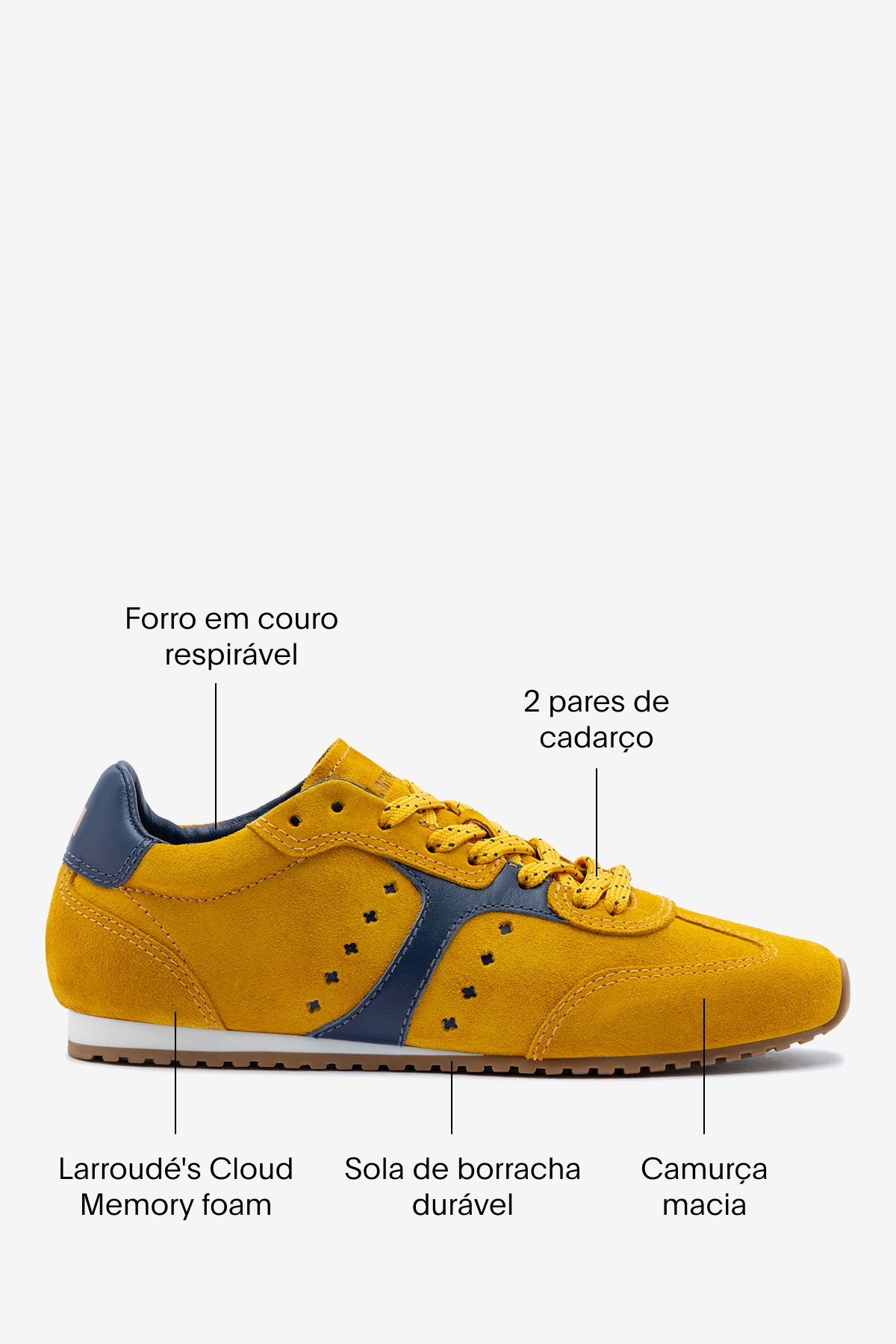 Bem-vinda à nossa era atlética! O nosso tênis best seller Stella é a prova de que conforto e estilo podem coexistir – e se destacar. Agora em uma camurça amarela super fashion com detalhes em couro azul-marinho, traz um toque ousado a qualquer look, da rotina urbana a escapadas no fim de semana.