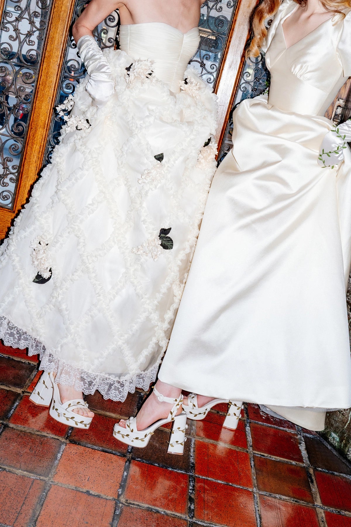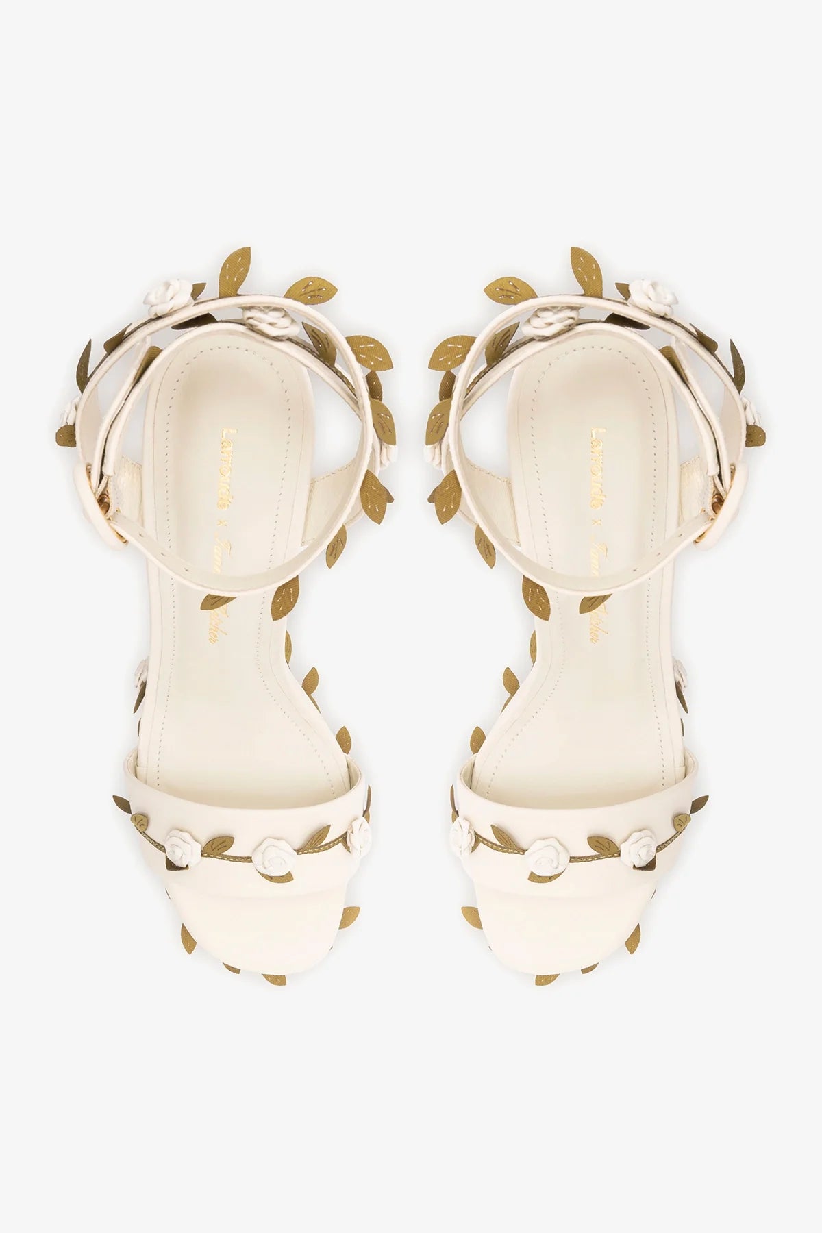 Larroudé x Tanner Fletcher: Sandália Dolly Rose Vines Couro Off White