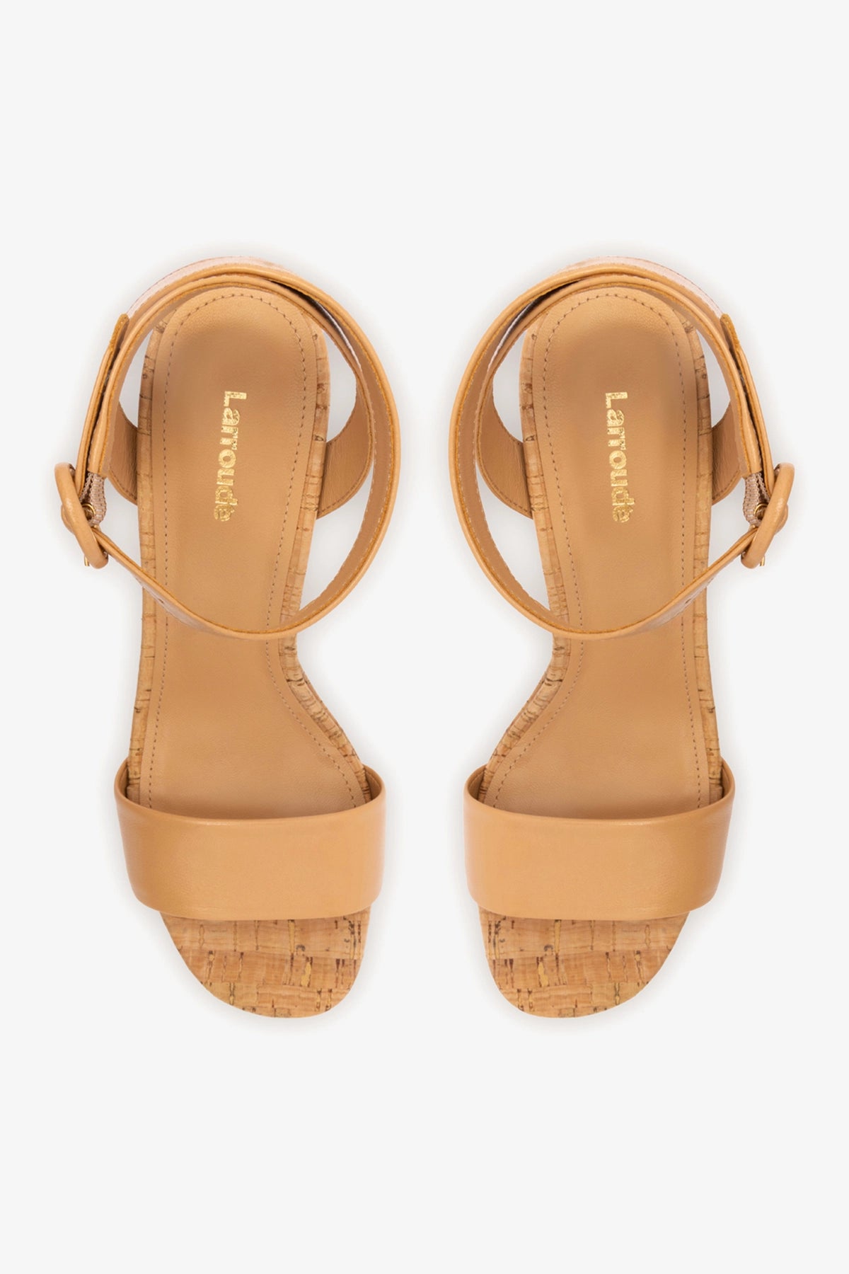 Festiva e chic, essa plataforma que alonga suas pernas deixa você pronta para tudo. Com uma base plataforma confortável e tira ajustável no tornozelo, essa nova versão de Dolly em couro verniz bege e salto em cortiça super retrô é uma opção à prova de erros tanto para o dia quanto para a noite.