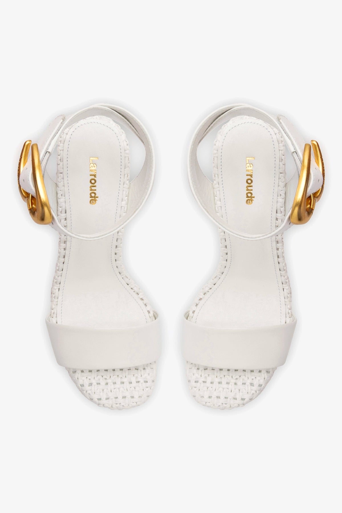 Um salto plataforma que alonga as pernas e combina perfeitamente com qualquer ocasião, seja para uma festa ou um look mais sofisticado. Nossa nova versão da Dolly Verona vem em couro napa branco, combinando uma base de ráfia em tom sobre tom, criando um visual marcante a qualquer hora do dia.