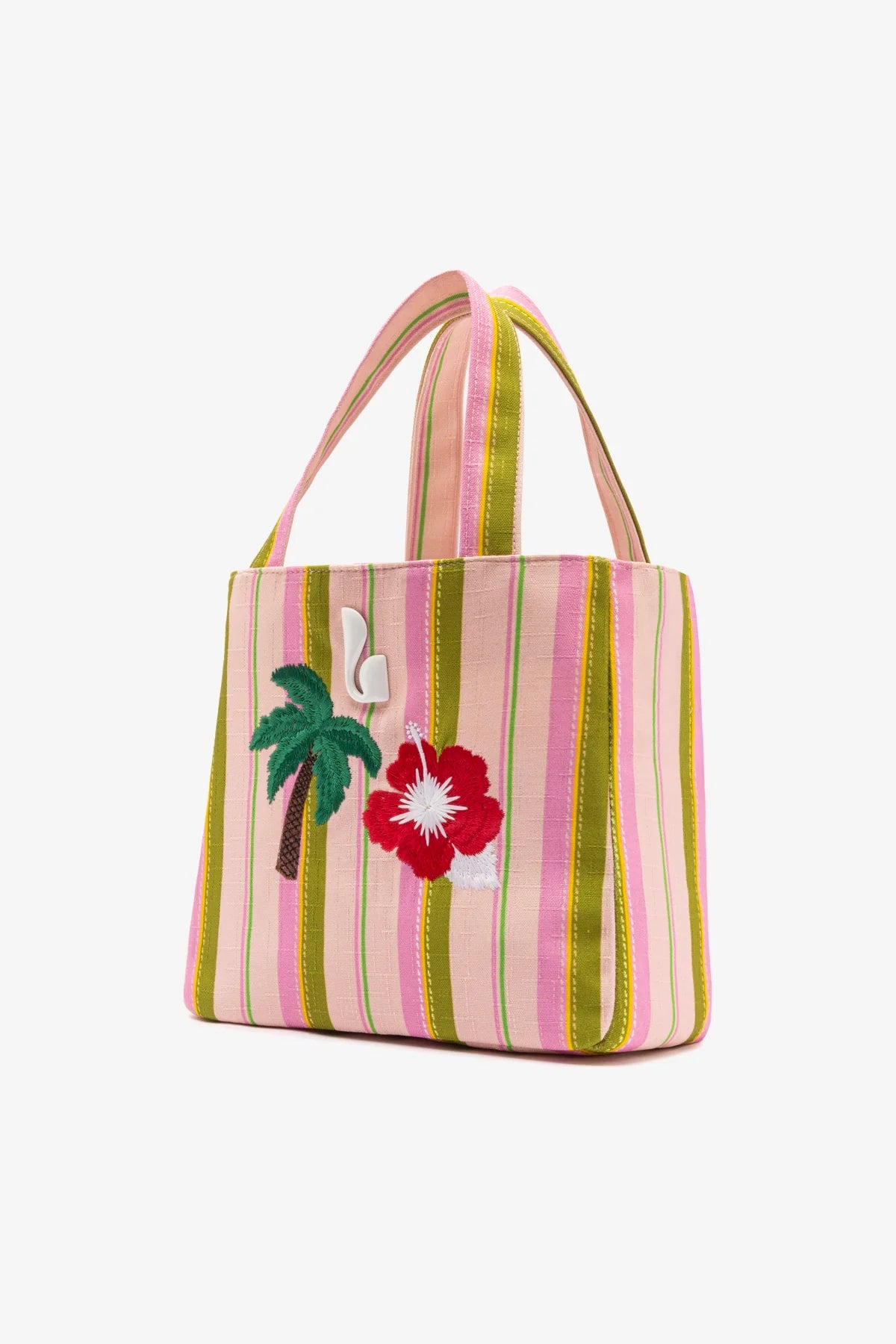 Um toque de verão em forma de bolsa, a tote bag Poppy Mini traz uma vibe tropical ao look, unindo listras vibrantes a bordados que deixam qualquer produção com clima de férias – mesmo na cidade. Leve, estruturada e no tamanho ideal para o essencial, ela te acompanha do almoço ao ar livre ao passeio de fim de semana.